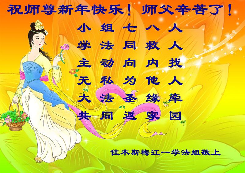 Kada stiže Nova godina, Falun Dafa praktikanti širom svijeta tradicionalno šalju pozdrave Minghui web stranici. Uz pozdrave stižu i ručno napravljene čestitke, pjesme i fotografije, kojima se s poštovanjem našem dobrodušnom i nesebičnom Učitelju Li Hongzhiju želi Sretna Nova godina. Oni izražavaju zahvalnost za dobrodušno spasenje od strane Učitelja.