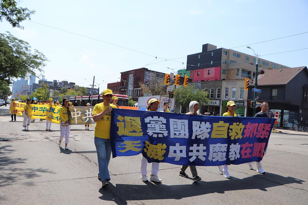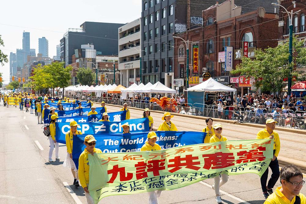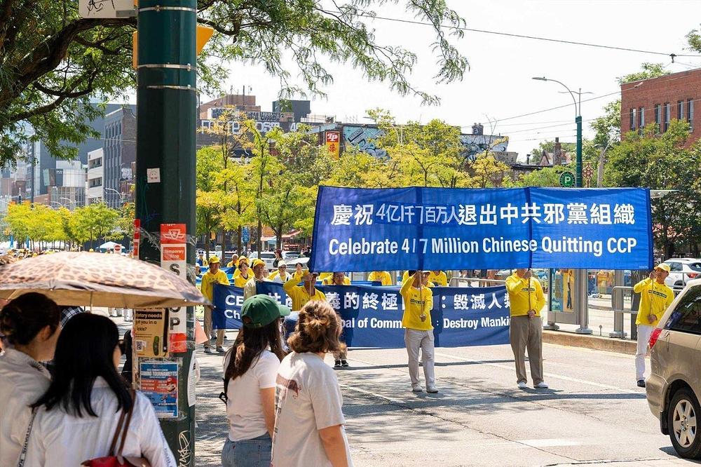 Falun Dafa praktikanti su u subotu, 19. avgusta 2023., održali povorku proslave u centru Toronta kako bi podržali 417 miliona Kineza koji su povukli članstvo iz Komunističke partije Kine (KPK) i njenih omladinskih organizacija. Povorka je počela u Clarence Parku i prošla ulicama Kineske četvrti.