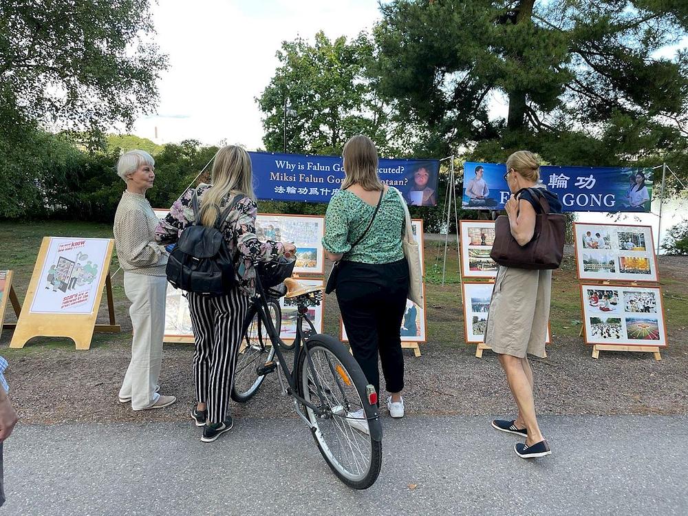 Izložba postera „Zaustavite prisilnu žetvu organa“, u organizaciji Falun Dafa asocijacije Finske, je održana u Hesperia Parku u Helsinkiju po prvi put tokom godišnjeg Helsinškog festivala 17. avgusta 2023. godine.