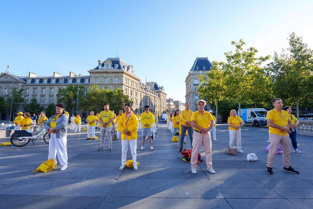 Preko 1.000 Falun Dafa praktikanata iz više od 30 zemalja se okupilo na trgu Place de la République u Parizu 26. avgusta 2023. na grupnom vježbanju velikih razmjera. Mirni prizor i prekrasna muzika privukli su veliku pažnju kako lokalnog stanovništva tako i turista.
