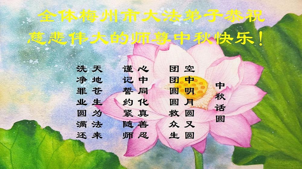 Falun Dafa praktikanti iz provincije Guangdong žele poštovanom Učitelju srećan Praznik sredine jeseni!