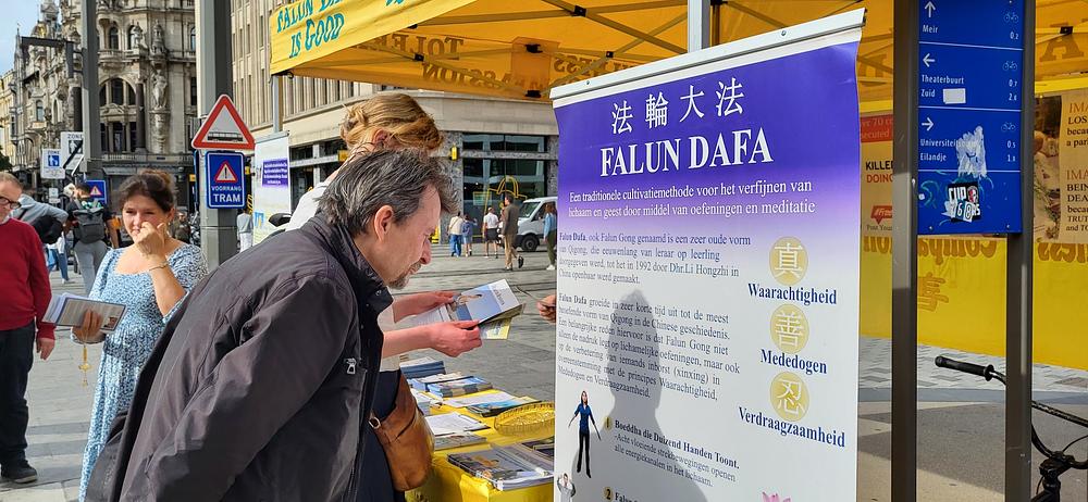 Praktikanti su održali informativne aktivnosti u Antwerpenu 30. septembra 2023., predstavljajući Falun Dafa. Tijekom aktivnosti praktikanti su također informirali posjetitelje o progonu prakse u Kini. Mnogi prolaznici su gledali demonstraciju vježbi i poželjeli saznati više. Jedan prolaznik po imenu Len je rekao: „Trebali bismo prenijeti poruku ljubaznosti. Principi Istinitosti-Dobrodušnosti-Tolerancije su sjajni!”