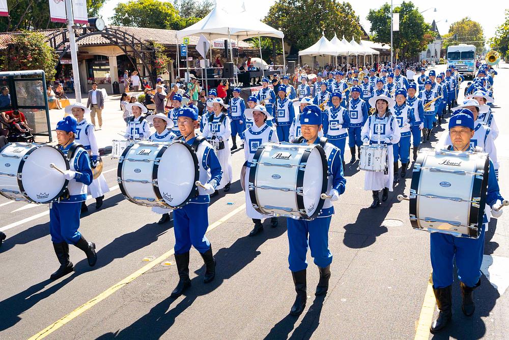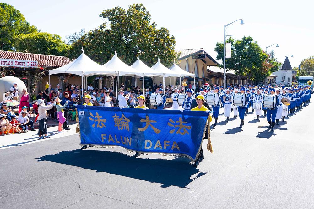 Parada je počela u 11 sati. Članovi Tian Guo Marching Banda Zapadnih SAD, u tradicionalnim bijelim i plavim kineskim odorama, izveli su pjesme među kojima je i „Falun Dafa je veličanstven". Živahna i čista glazba, uz njihove sinkronizirane korake, izazvali su pljesak i pohvale gledatelja duž rute parade.