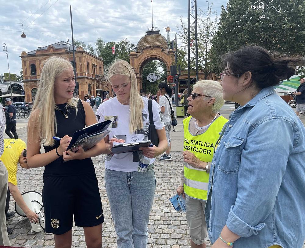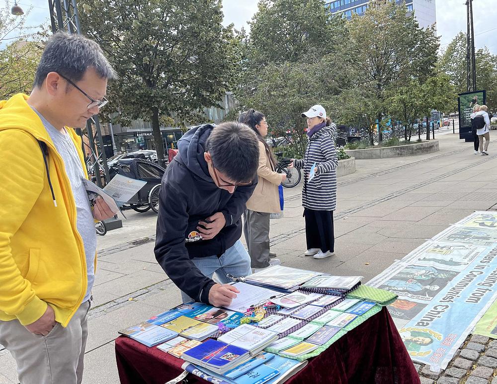 Praktikanti iz Danske i Švedske svake subote održavaju aktivnosti u centru Kopenhagena. Oni demonstriraju vježbe, govore ljudima o Falun Dafa i progonu kojeg Komunistička partija Kine (KPK) vrši nad ovom duhovnom disciplinom. Mnogi su ljudi potpisali peticiju u znak podrške raspuštanju KPK.