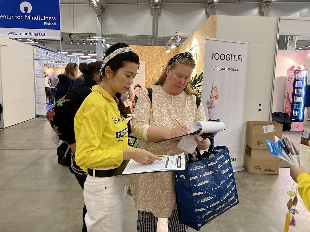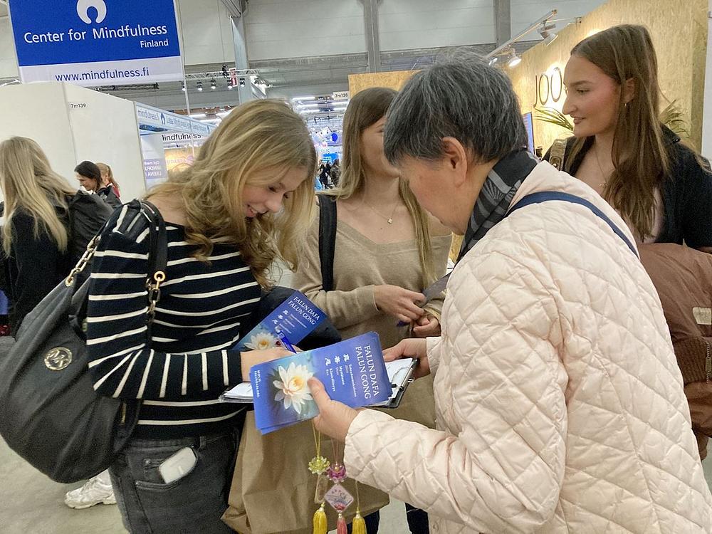 Više od 56.000 ljudi je od 20. do 22. listopada prisustvovalo sajmu zdravlja u Helsinkiju na temu „Volim svoje zdravlje.“ Na sajmu su prezentirani trenutni trendovi u ljepoti, modi i wellnessu. Praktikanti su imali štand na kojem su davali informacije o Falun Dafa i poučavali vježbama. Otprilike 30 ljudi prisustvovalo je svakoj sesiji i mnogi su ljudi naučili vježbe tijekom trodnevnog događaja.