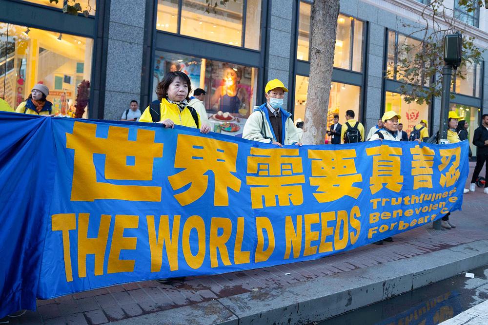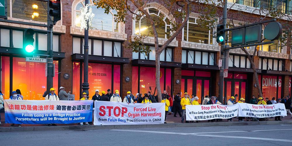 Praktikanti duhovne prakse Falun Dafa održali su miran prosvjed u blizini Moscone centra gdje se održava summit Azijsko-pacifičke ekonomske suradnje (APEC), 14. studenog 2023. Skrenuli su pozornost na 24-godišnji progon Falun Dafa kojeg provodi Komunistička partija Kine (KPK). Predstavljali su duhovnu praksu posjetiteljima i informirali ih o zločinima KPK-ovog progona praktikanata. Praktikanti su pozvali vlade svake zemlje da pomognu okončati ova nečuvena kršenja ljudskih prava.