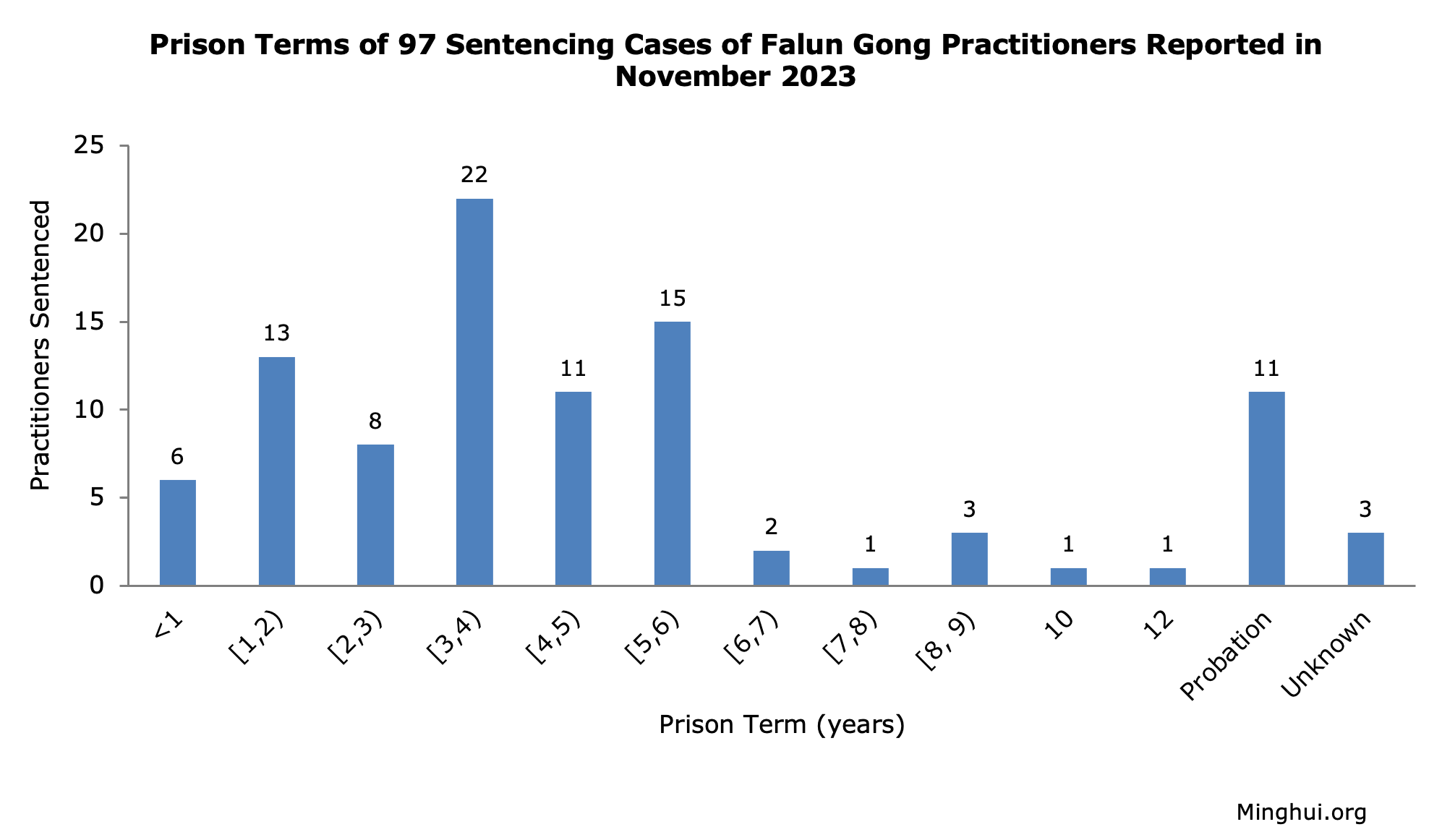 Mjesec studeni 2023. bilježi 97 prijavljenih slučajeva progona Falun Gong praktikanata koji su osuđeni za zatvor zbog ustrajavanja u vjeri.