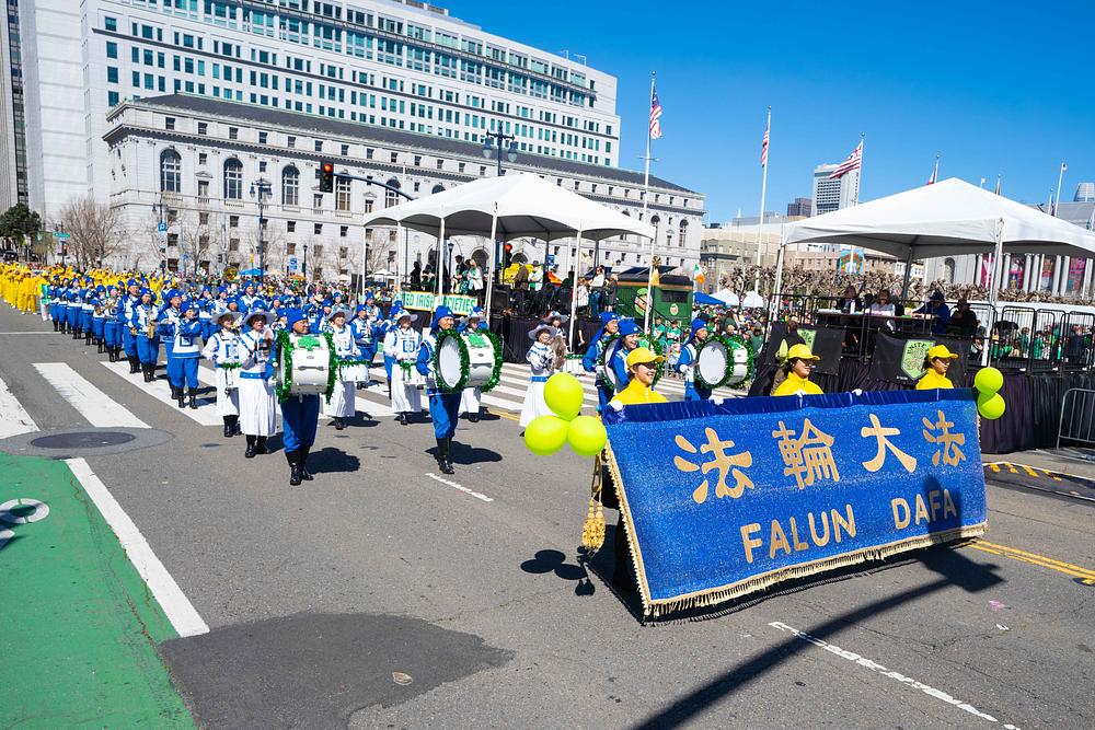 Grad San Francisco bio je ispunjen prazničnim ozračjem, a ulice su bile prepune gledatelja parade. Falun Dafa grupa uključivala je tim za demonstraciju vježbi, tim za bubnjare i Tian Guo Marching Band iz Zapadnih SAD. Do sada, Falun Dafa grupa drži rekord kao najveći tim u gradskoj povorci za Dan svetog Patrika. Mnogi su gledatelji plesali uz glazbu koju je svirao Tian Guo Marching Band, neki su se radosno fotografirali s praktikantima, a drugi su im izražavali podršku.