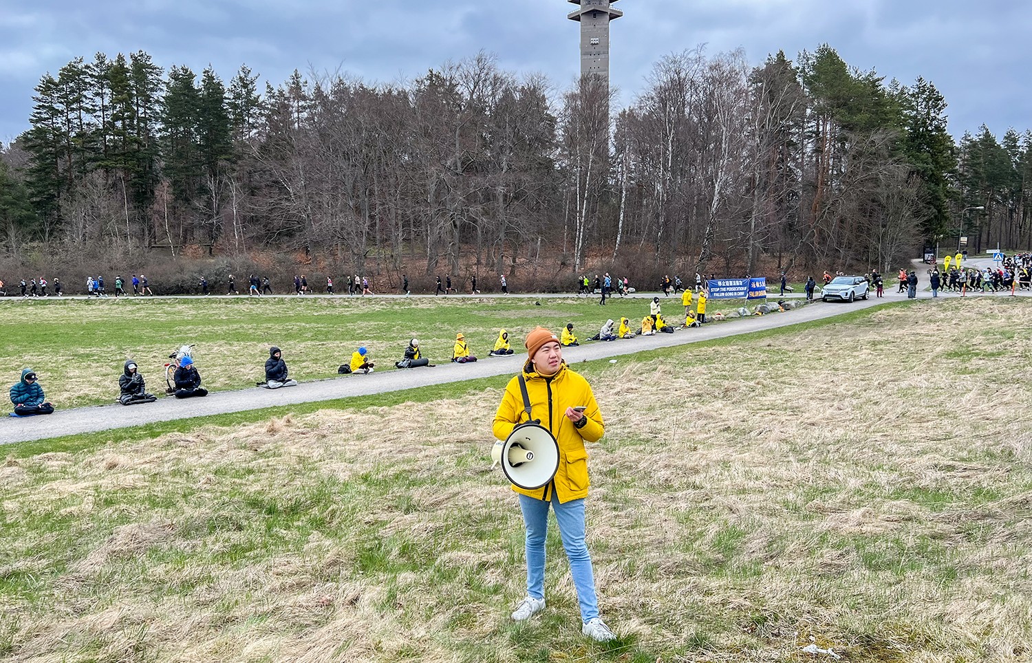 Godišnji proljetni polumaraton održan je u Stockholmu istog dana. Iako je bilo hladno i vjetrovito, ulice su bile prepune ljudi i automobila. Praktikanti su demonstrirali vježbe na travnatoj površini preko puta kineskog veleposlanstva i istaknuli su privlačne transparente s natpisima "Falun Dafa je sjajan" i "Stop progonu Falun Gonga". Također su distribuirali informacije i razgovarali s ljudima o progonu u Kini, koji sada ulazi u 25 godinu.