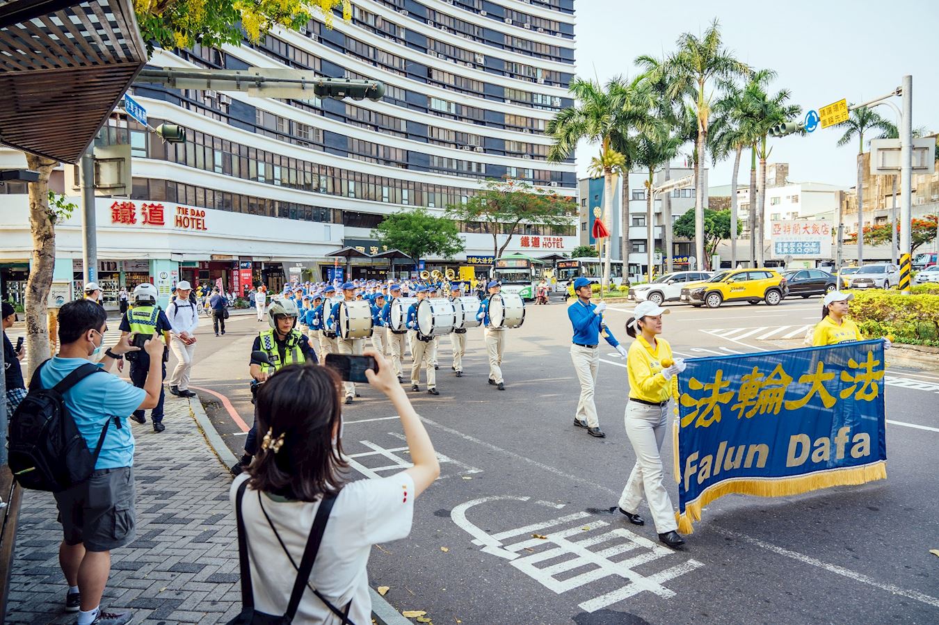 Parada je počela uz Tian Guo Marching Band koji je izveo pjesme: “Hvala vam Učitelju” i “Falun Dafa je sjajan”. Također su nosili maketu Zhuan Falun, glavne knjige Falun Dafa, i mnogo zastava s porukama koje su slavile tu priliku. Potom je uslijedila grupa vilinskih djevojaka i praktikanata koji su svirali doboše i demonstrirali vježbe. Ljudi su stajali s obje strane puta da ih gledaju. Neki su ih fotografisali svojim mobilnim telefonima, dok su drugi bili oduševljeni videći kako Falun Dafa praktikanti donose radost i nadu zajednici.
