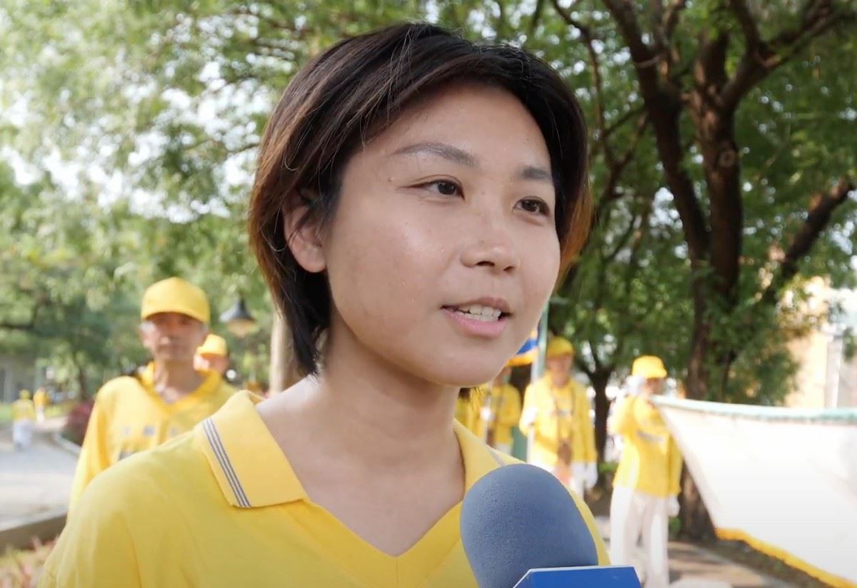 Kako je odrastala prakticirajući kultivaciju, često je u knjizi Zhuan Falun pronalazila odgovore o tome koja je svrha života. Učestvovala je u paradi kako bi izrazila svoju zahvalnost Učitelju Liju. Ona se takođe nada da će ljudi nakon što su gledali biti inspirisani da preuzmu Falun Dafa.