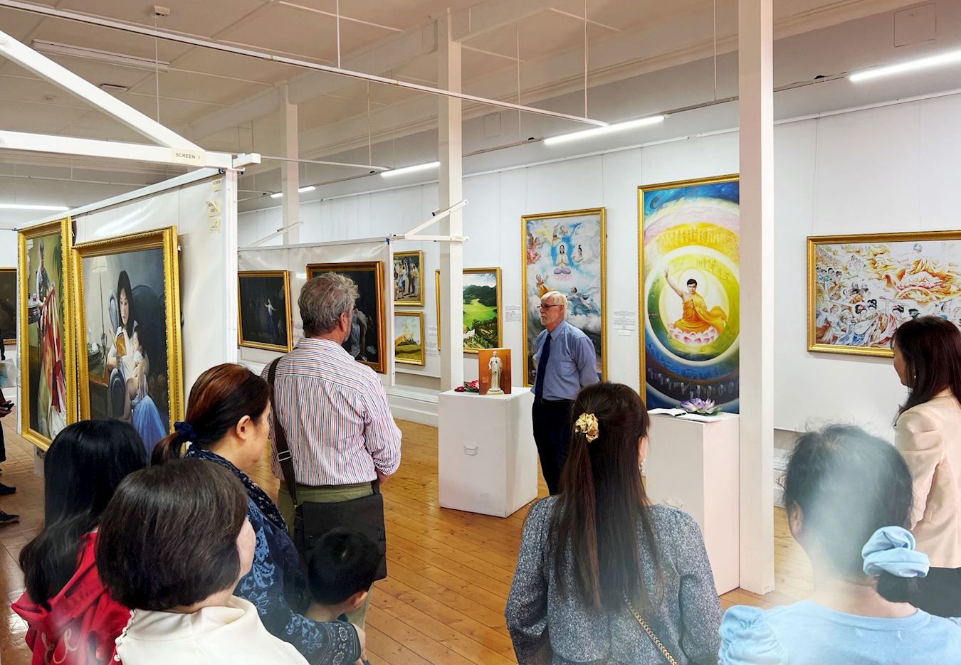 Allen Remachan, učitelj likovnog u zajednici, pomno je pregledao svaku sliku na izložbi. “Ovo su remek-djela,” rekao je, “ne samo da su tehnike vrhunske, kompozicije su izuzetne, one pokazuju bogat duhovni sadržaj. Svaka slika je privlačna. Posebno mi se svidio crtež koji je prikazao značenje prakticiranja kultivacije i smirenost meditacije.”