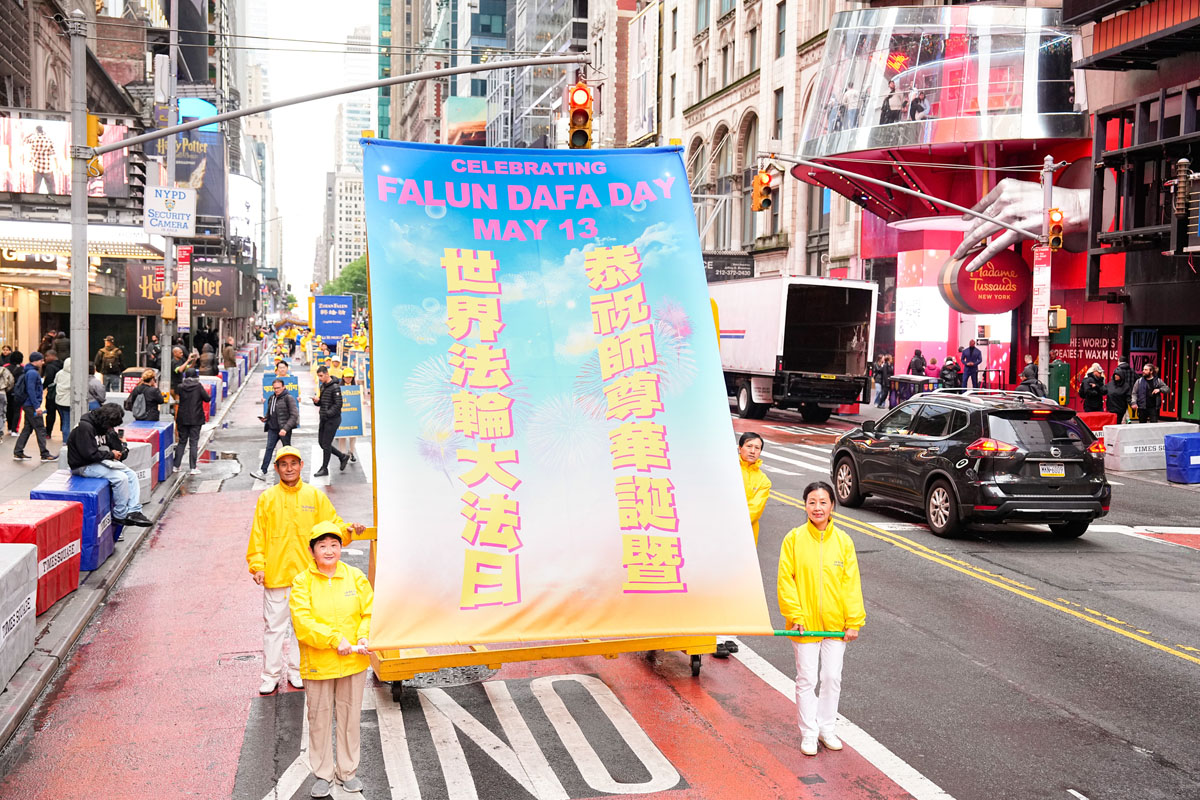 Gospodin Zhongyuan Yi, organizator parade i predstavnik njujorškog Falun Dafa udruženja, rekao je: „Danas je 32. godišnjica javnog predstavljanja Falun Dafe. Održali smo veliku paradu u celoj 42. ulici na Menhetnu da pokažemo svetu čudo Falun Dafe i koliko je Dafa rasprostranjena. Istovremeno, izražavamo zahvalnost Učitelju i želimo mu srećan rođendan.”