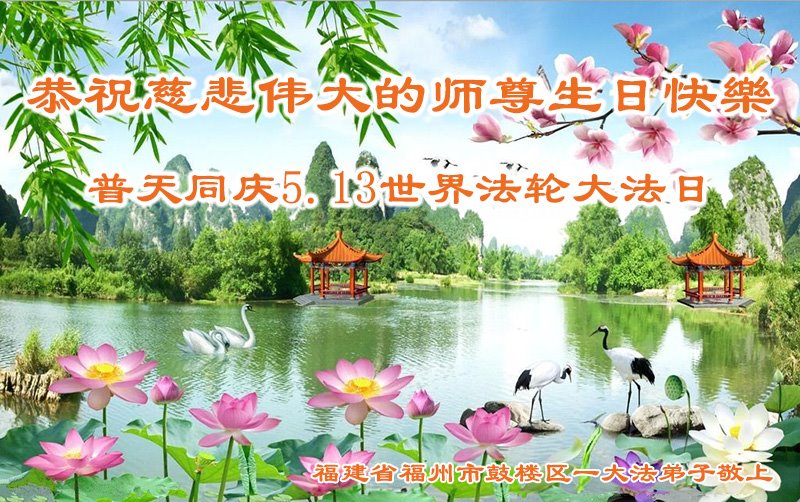 Falun Dafa praktikanti iz provincije Fujian žele poštovanom Učitelju sretan rođendan i slave Svjetski dan Falun Dafa!