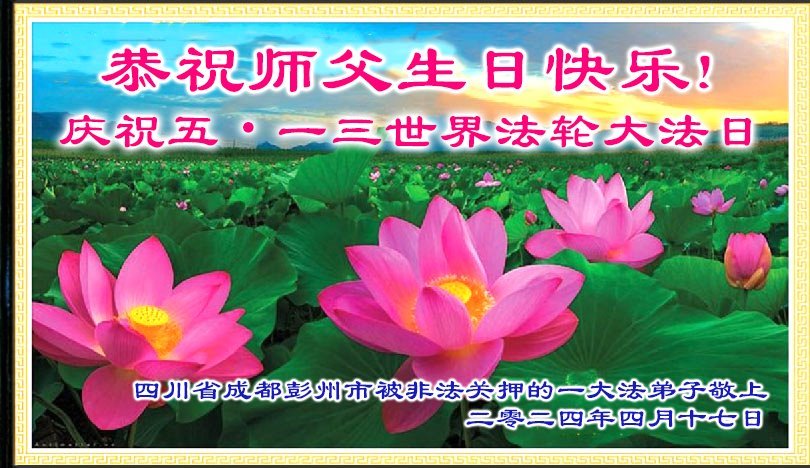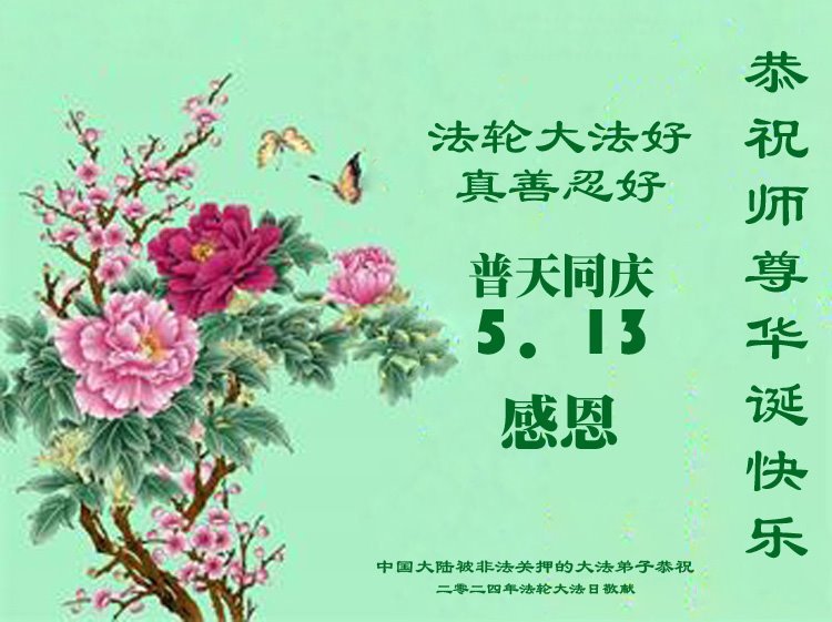 U posebnoj prigodi obilježavanja 32. godišnjice javnog predstavljanja Falun Dafa i 73. rođendana Učitelja Li Hongzhija 13. svibnja 2024., Minghui.org prima niz čestitki od praktikanata diljem svijeta. Među njima je posebna skupina praktikanata, koji su trenutno zatvoreni u kineskim pritvorskim centrima ili zatvorima zbog podupiranja svoje vjere. Unatoč cenzuri informacija, ipak su uspjeli objaviti svoje poruke kako bi izrazili svoju zahvalnost ovoj praksi i osnivaču Dafa.