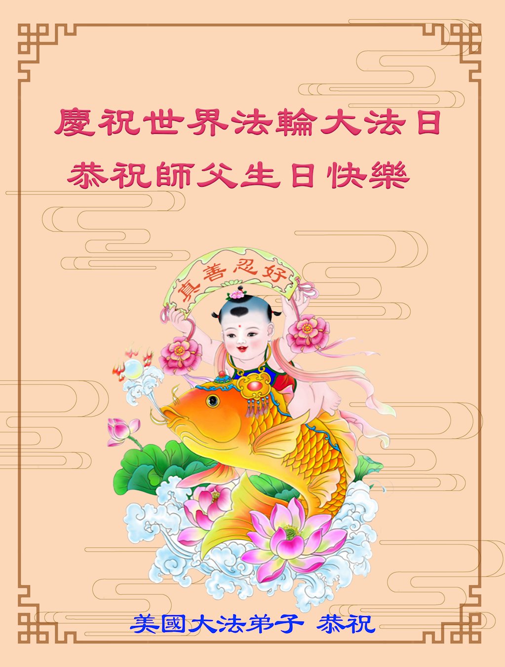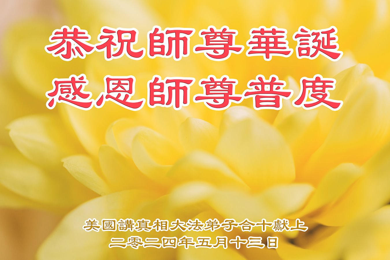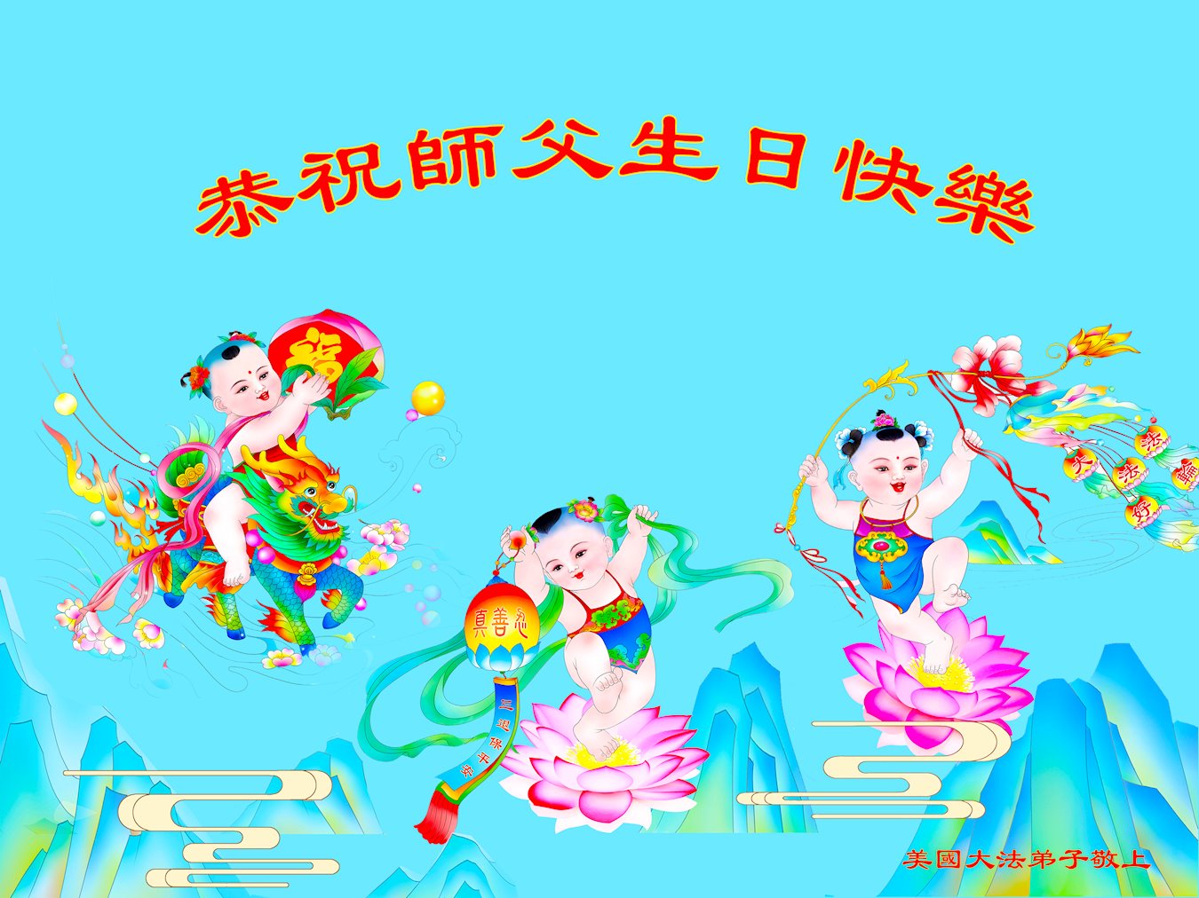 Praktikanti iz Sjedinjenih Država poslali su svoje pozdrave i čestitke izrađene kod kuće na web stranicu Minghui.org kako bi proslavili ovu veliku prigodu. Oni izražavaju svoju duboku zahvalnost Učitelju Liju i obećavaju da će biti marljiviji u kultivaciji i pomoći većem broju ljudi da nauče dobrobiti i divote Falun Dafa.
