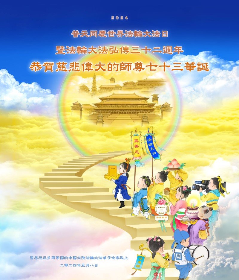 Stigle su čestitke i sa Kube.Primljene su rođendanske čestitke praktikanata iz Ekvadora.Čestitke praktikanata iz Portorika. Vaš okret prema Svjetlosti obuhvata sve Sve od svega svuda Sada fokusiran ovdje danas za Tvoju Slavu!Arapski praktikanti slave Svjetski dan Falun Dafa.Praktikanti sa Filipina žele Učitelju Liju srećan rođendan!Čestitke praktikanata iz New Taipei Cityja, Tajvan.Primljene su čestitke praktikanata iz Makaa.Praktikanti sa Kipra žele Učitelju Liju srećan rođendan!Svoje čestitke su poslali i praktikanti iz Bosne i Hercegovine.Praktikanti iz Mađarske žele Učitelju Liju sretan rođendan!Praktikanti iz Moldavije su poslali svoje čestitkePraktikanti iz Slovačke i Češke žele Učitelju Liju srećan rođendan!Primljene su čestitke praktikanata iz Palestine.Praktikanti u Siriji slave Svjetski dan Falun Dafa.Praktikanti iz Kirgistana žele Učitelju Liju srećan rođendan!