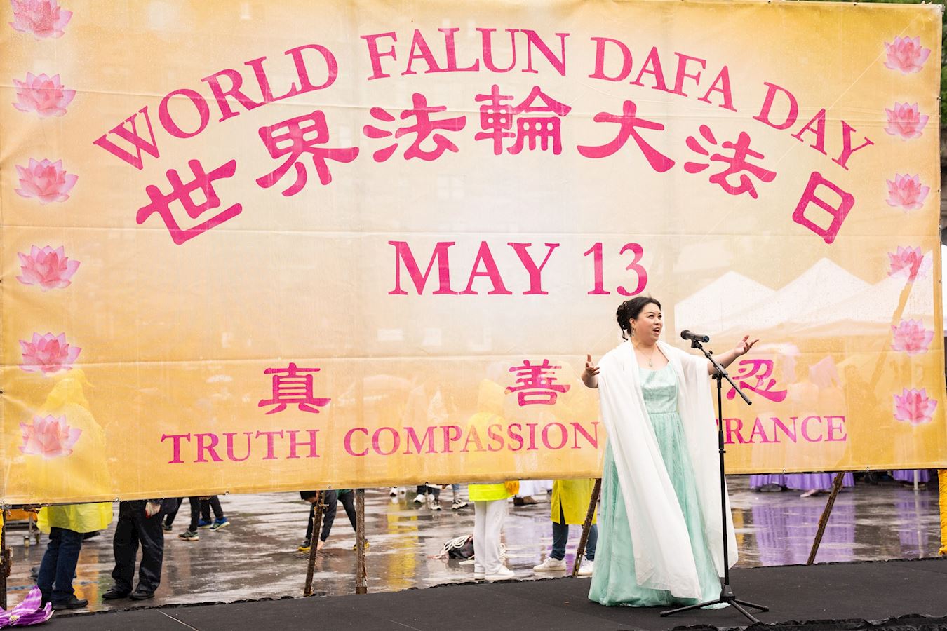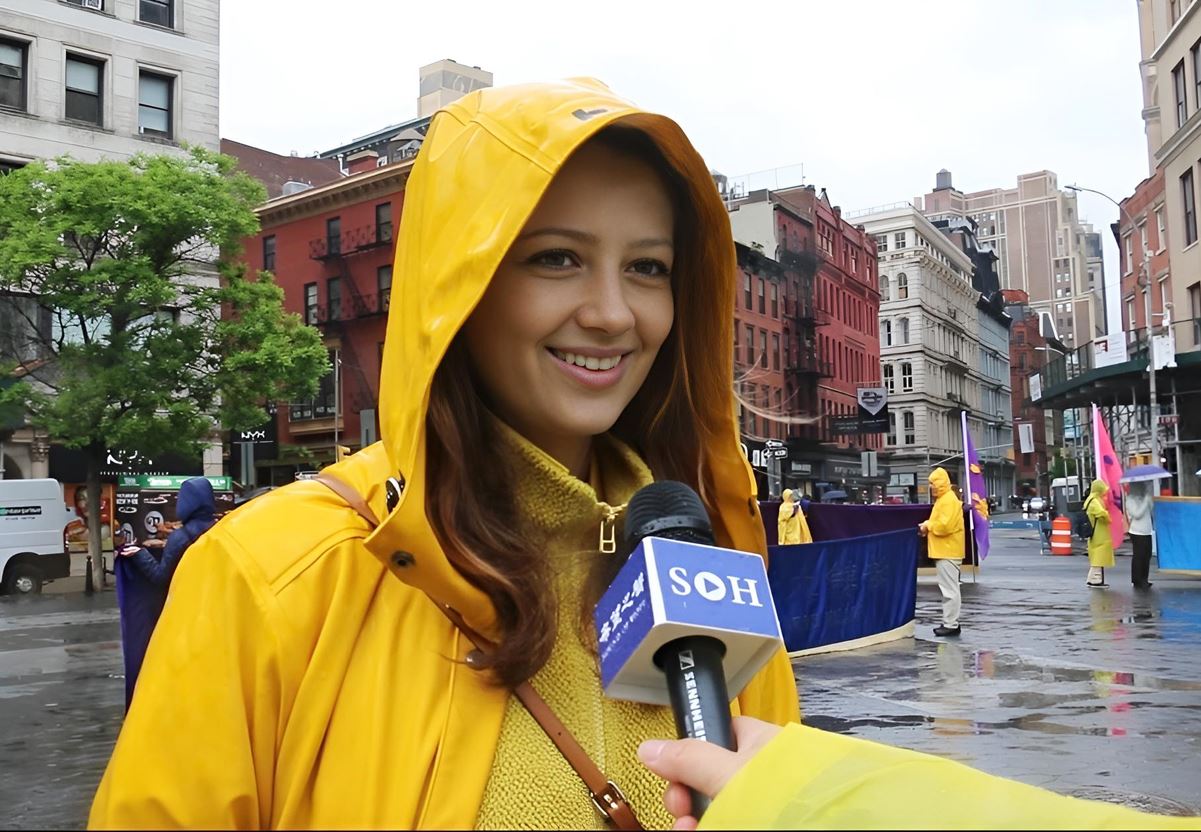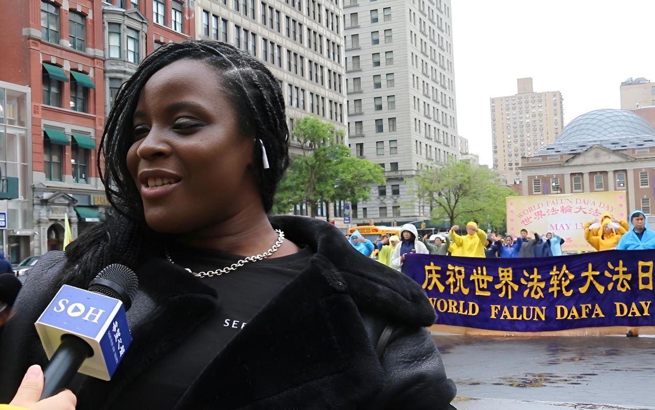 Srednjoškolska profesorica Holly Kellum primijetila je jasan kontrast između pozitivne energije Falun Dafa i kišovitog dana. Rekla je da bi voljela da je vrijeme bilo bolje, jer su Falun Dafa i principi Istinitosti-Dobrodušnosti-Tolerancije vrlo značajni za naš svijet.