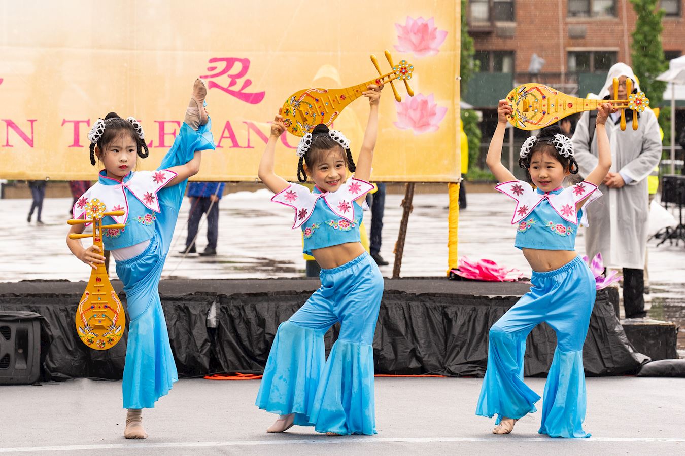 Kako bi izrazili svoju zahvalnost Falun Dafa i Učitelju Li-ju, praktikanti su pjevali, plesali, svirali glazbene instrumente i izvodili plesove zmajeva i lavova. Nastupili su i Tian Guo Marching Band i grupa bubnjara.
