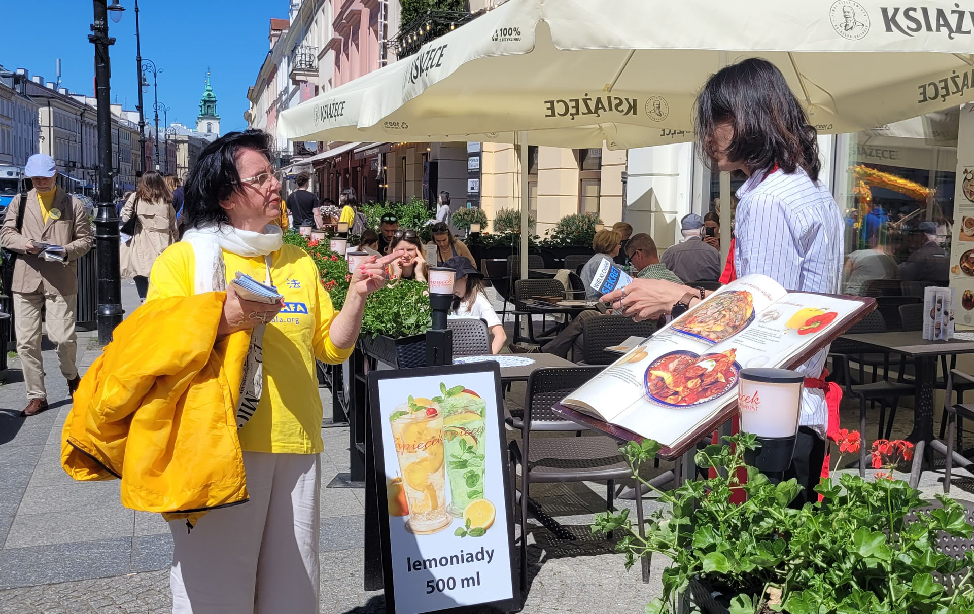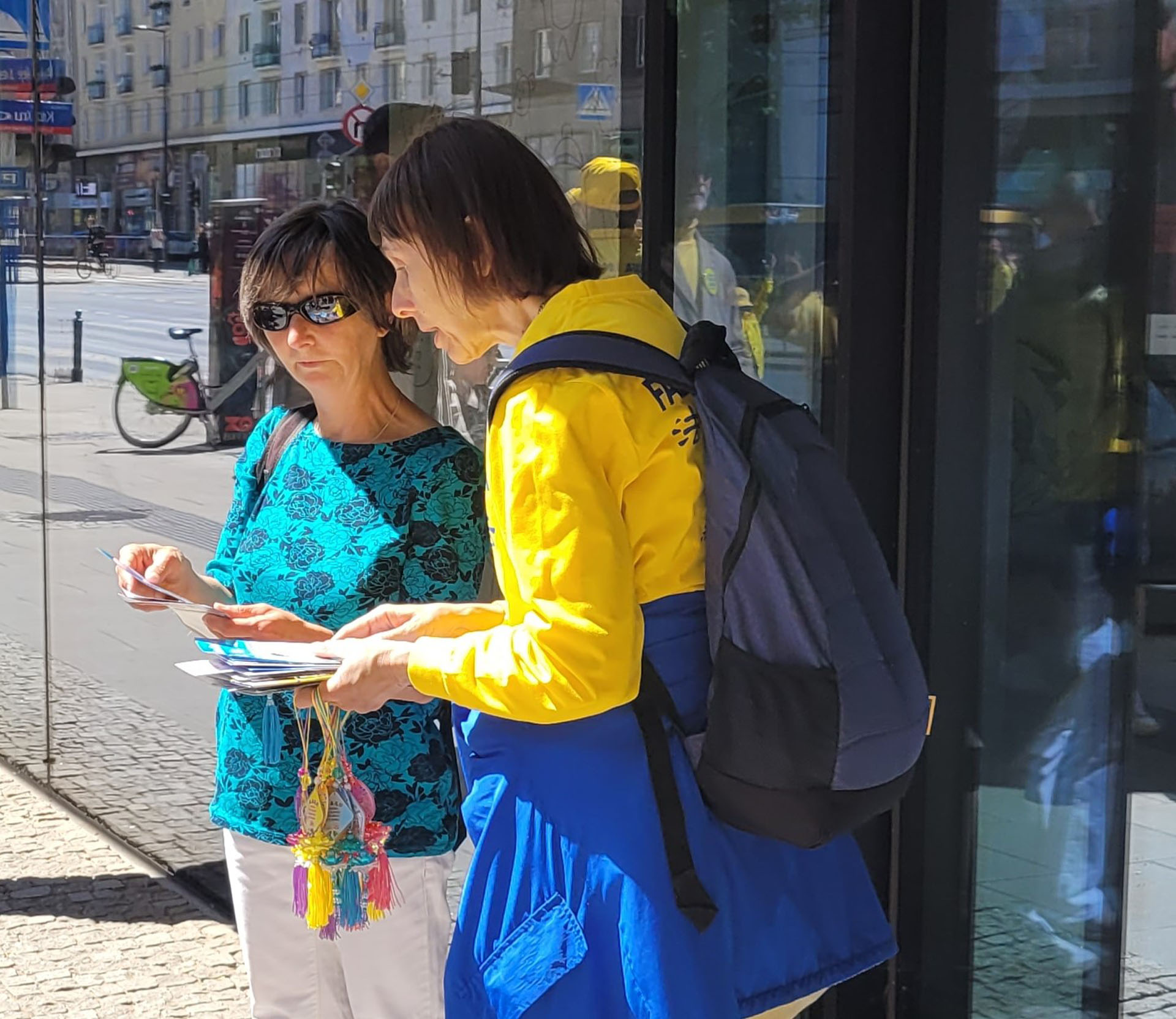 Jedan je Kinez bio u posjeti Starom gradu sa svojom porodicom. Nasmiješio se praktikantu i rekao da zna za Falun Dafa. “Zanimljivo je da toliko Poljaka uči Falun Dafa i tradicionalnu kinesku kulturu, ali KPK opako potiskuje ovu praksu,” rekao je. “Partija je tako loša i nadam se da će uskoro završiti.”