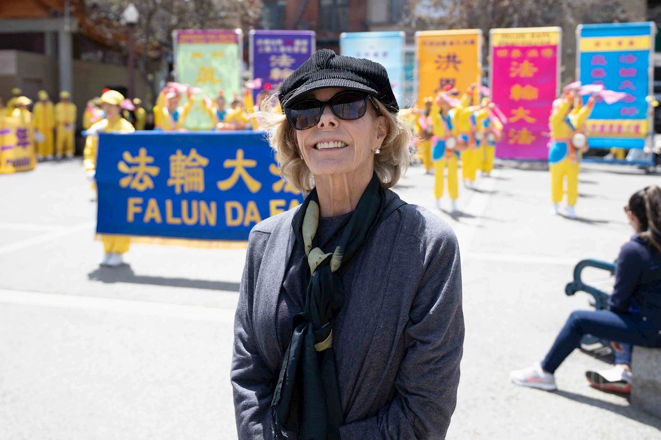 Diane je privukao nastup praktikanata kada je prolazila pored Portsmouth Squarea. Zastala je da ih gleda i fotografiše se. Rekla je: „Nevjerovatno, dopada mi se. Jesu li iz San Francisca? Otići ću ću na internet da saznam više o Falun Dafa.”