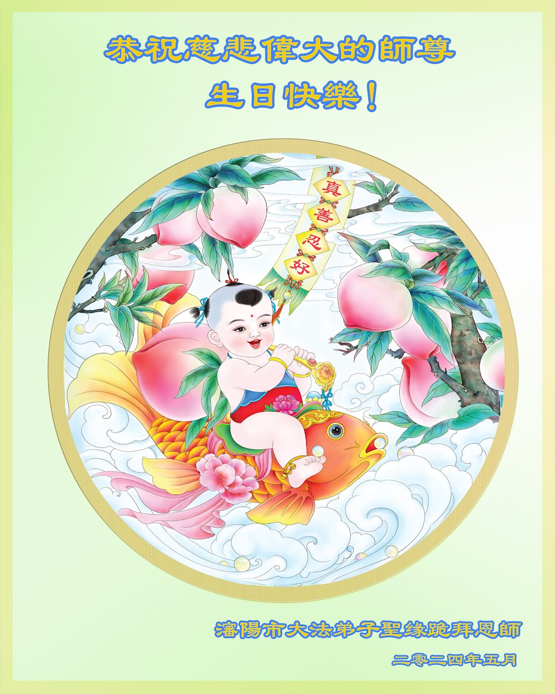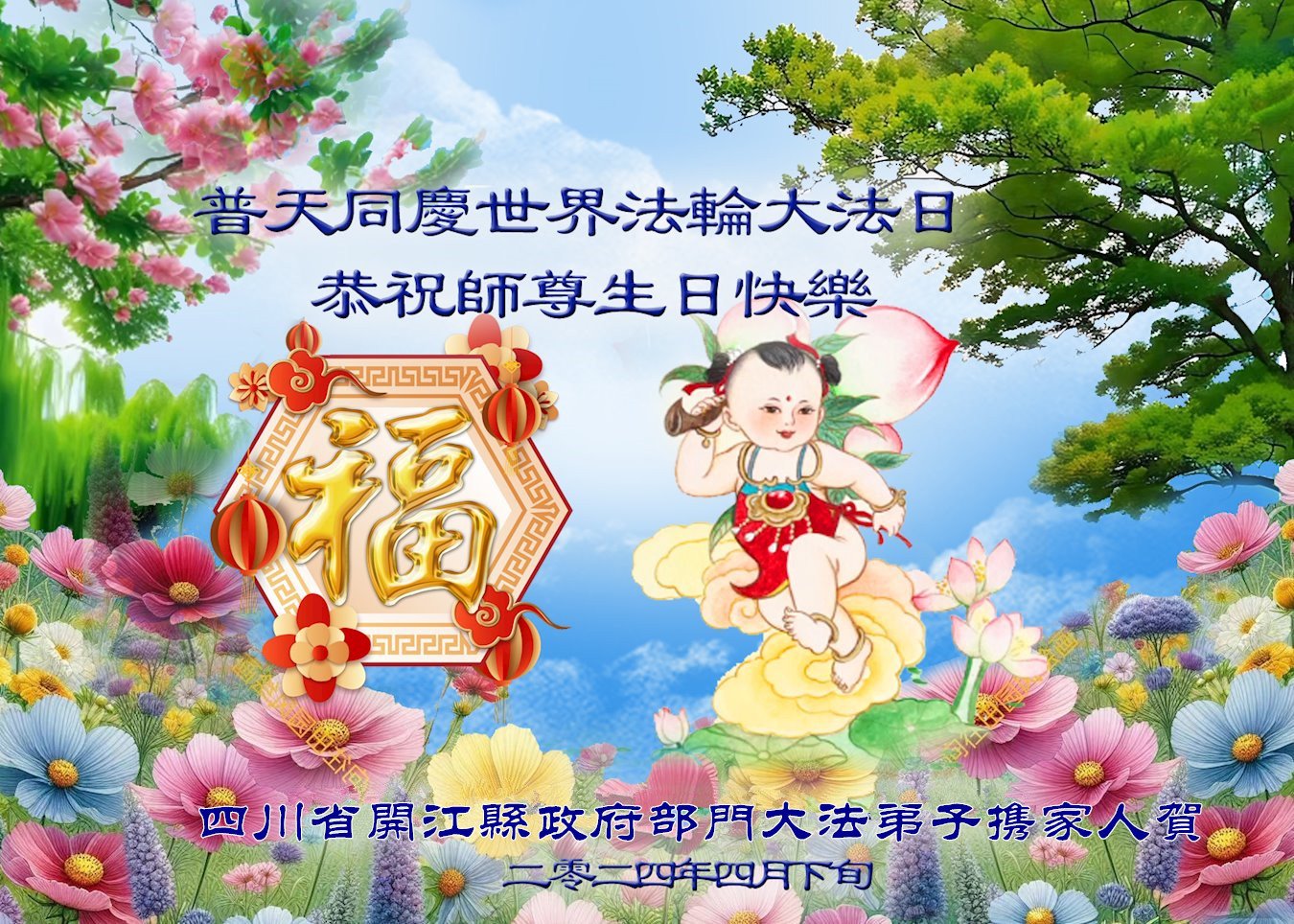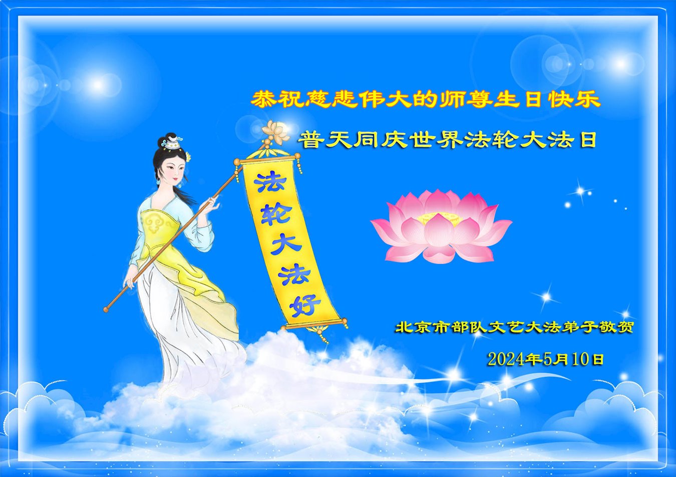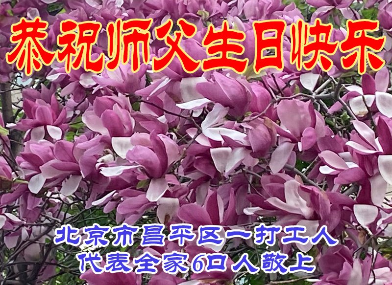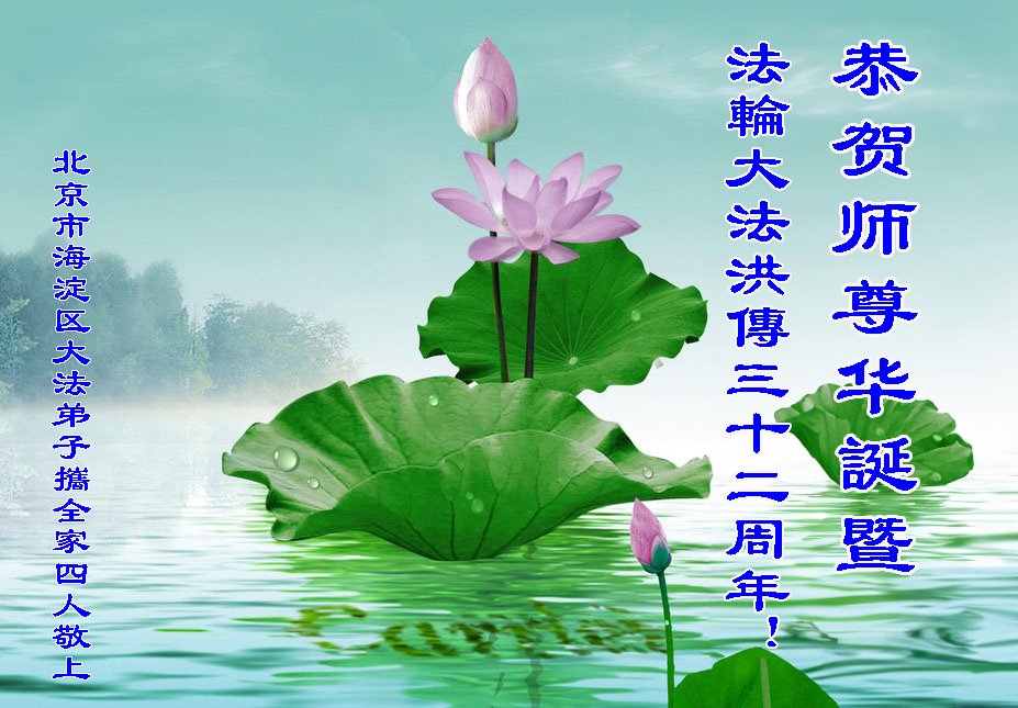 Kao i obično, na ovaj Svetski dan Falun Dafe, praktikanti u Kini su nastavili da šalju svoje iskrene čestitke proslavljajući javno predstavljanje Dafe i želeći Učitelju Liju srećan rođendan. Ni iskazuju svoju duboku zahvalnost Učitelju i obećavaju da će biti marljiviji u svojoj kultivaciji i pomoći većem broju ljudi da sazna koliko je Falun Dafa divna.