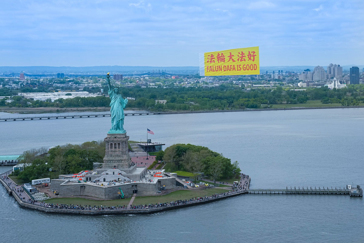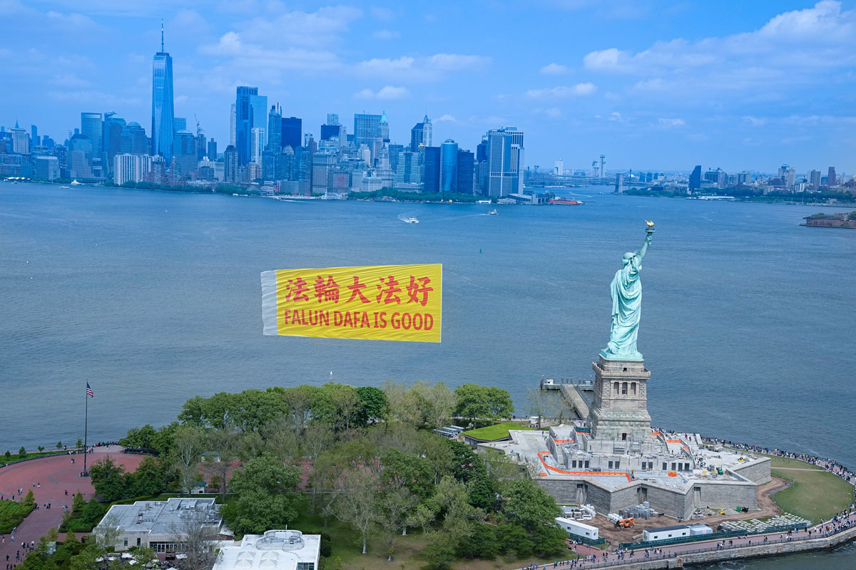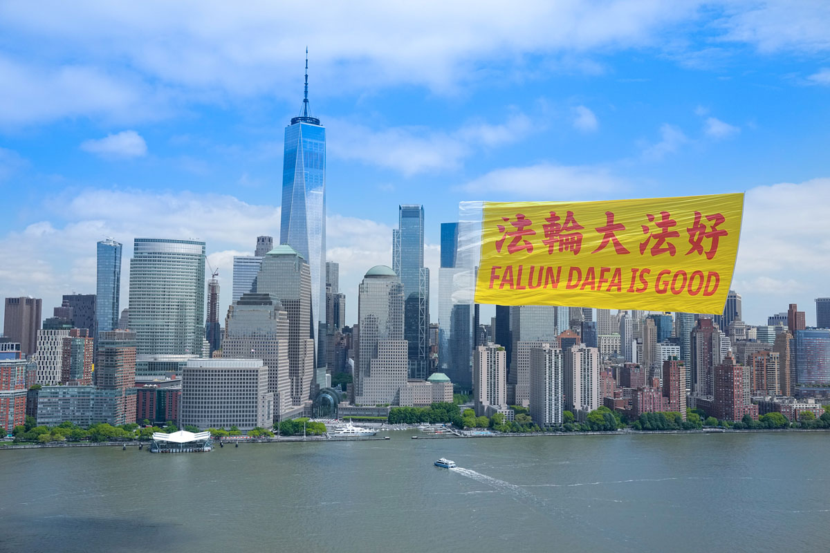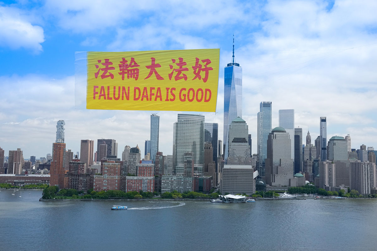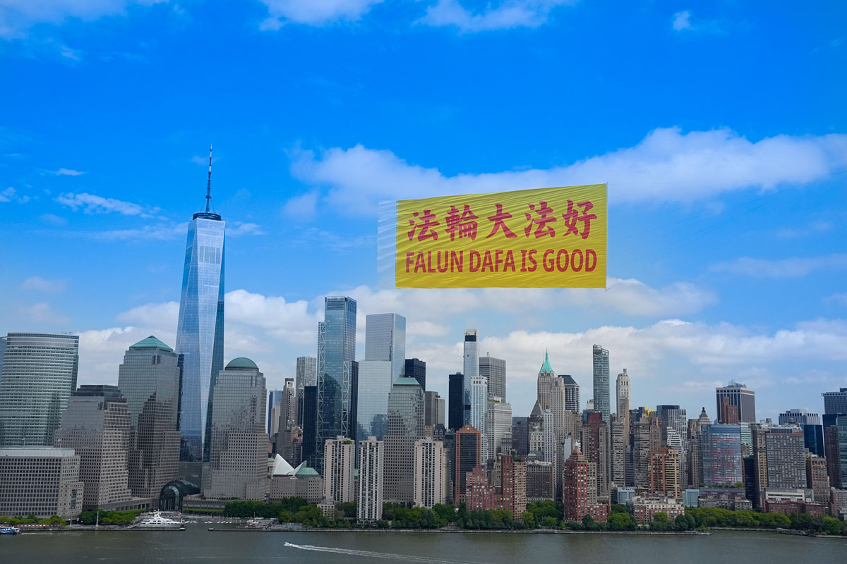 13. maja 2024. je bio 25. Svetski dan Falun Dafe, 32 godišnjica javnog predstavljanja Falun Dafe, kao i rođendan osnivača Falun Dafe, majstora Li Hongdžija. Proslavljajući ovaj poseban dan, Falun Dafa praktikanti u Njujorku su iznad grada postavili ogroman transparent sa natpisom „Falun Dafa je dobra“ na kineskom i engleskom jeziku.