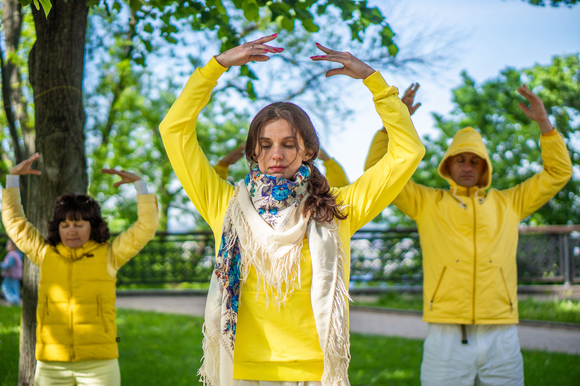 Ludmila, koja je organizovala ovogodišnju aktivnost, ove godine ima 76 godina. Ona prakticira već 24 godine. Ljudi se obično iznenade kada saznaju za njene godine budući da izgleda mnogo mlađe. Puna je snage i energije. Ljudmila to pripisuje svom prakticiranju Falun Dafa.