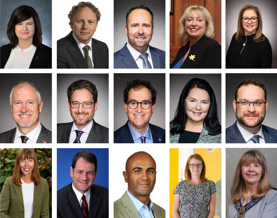 Četvrti red s lijeva na desno: Richard Norcross (gradonačelnik New Tecumsetha), Jennifer Coughlin (gradonačelnica Springwatera), Mario G. Racco (vijećnik grada Vaughana), Matt Mahoney (vijećnik za Ward 8, Mississauga) i Brad Butt (gradski vijećnik Mississauge, odjel 11)