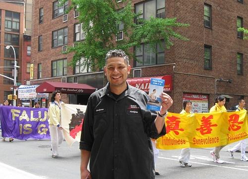 Mauricio je promatrao paradu i pročitao letak: „Sviđa mi se poruka koju donosi ova parada. Upravo sam saznao za progone koji se već godinama odvijaju u Kini. Nadam se da će mnogo ljudi pružiti podršku Falun Gongu koji se odupire. Bavim se yogom i poznate su mi dobrobiti meditacije. Vjerujem da će ova grupa svakim danom postajati sve jača i jača.“