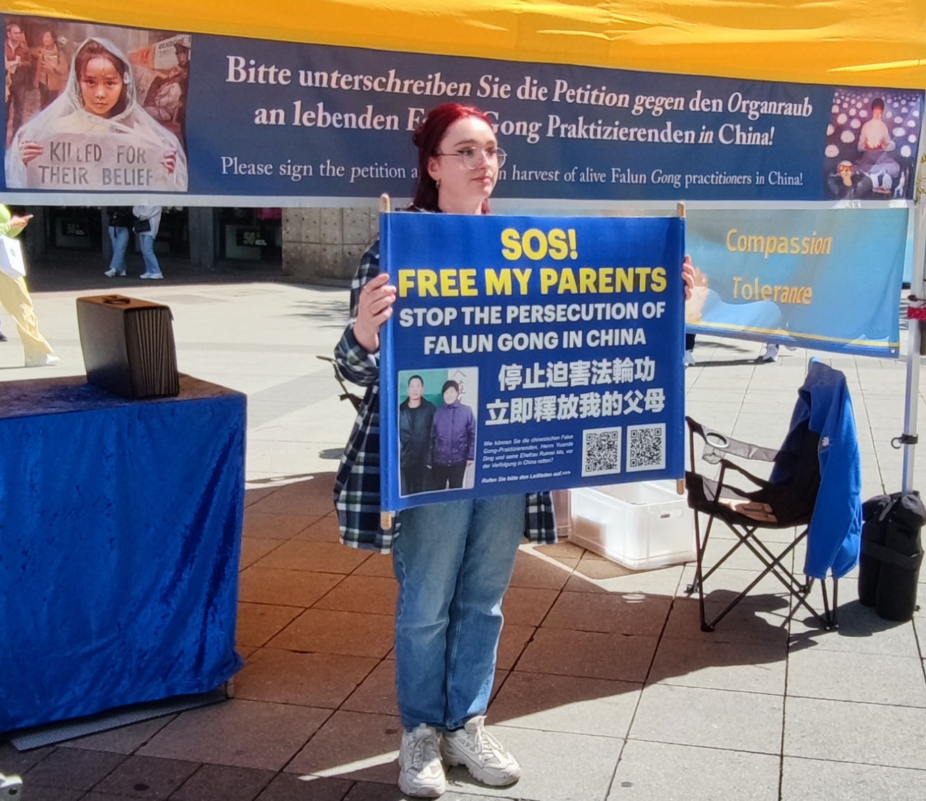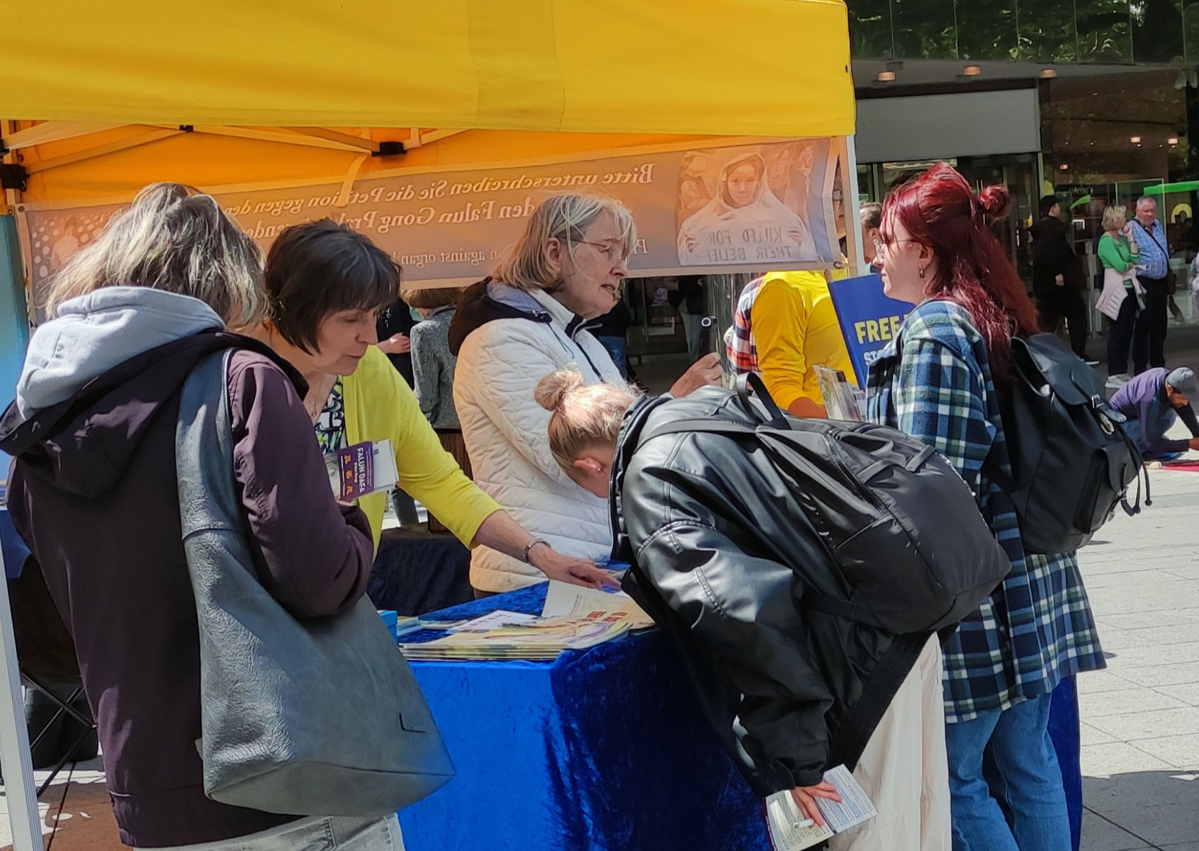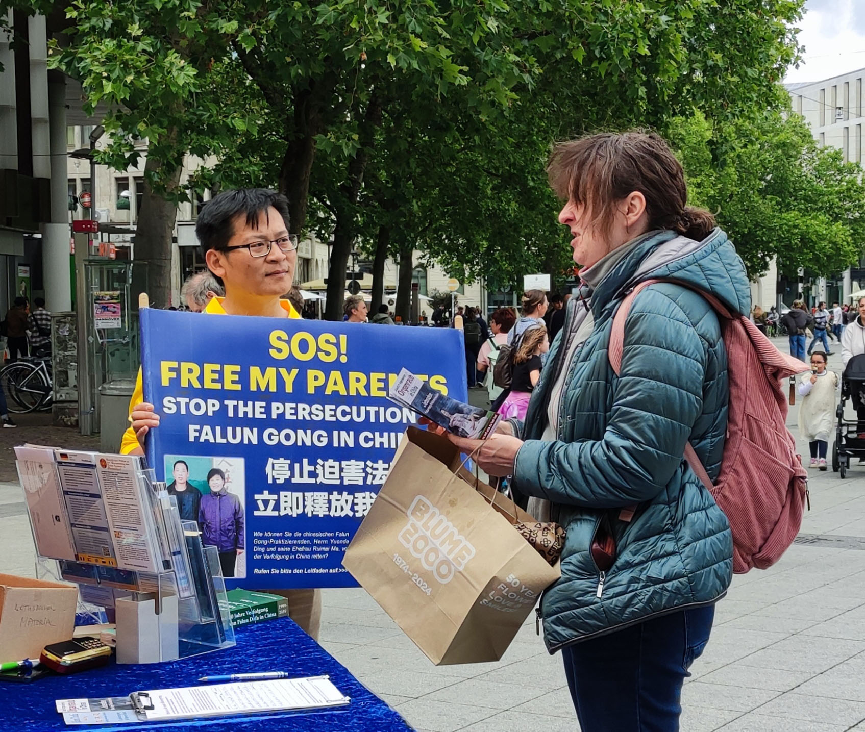 Praktikanti su informirali javnost o brutalnom progonu s kojim se Falun Gong praktikanti u Kini i dan danas suočavaju. G. Ding, koji živi u Njemačkoj, podijelio je iskustvo progona svojih roditelja zbog prakticiranja Falun Gonga. Mnogi su ljudi zastali kako bi pozorno saslušali izrazivši zabrinutost. Neki su pitali: “Što možemo učiniti? Kako vam možemo pomoći?”