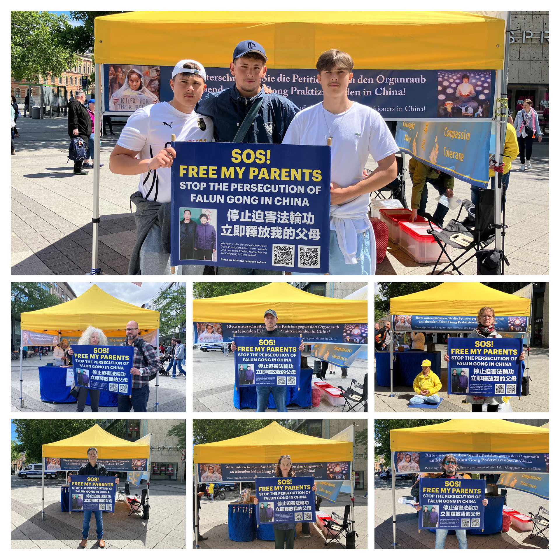 Tijekom dana su se mnogi ljudi fotografirali s natpisom “SOS: Zaustavite progon Falun Gonga - oslobodite moje roditelje bez odgađanja” kako bi iskazali svoju podršku praktikantima.