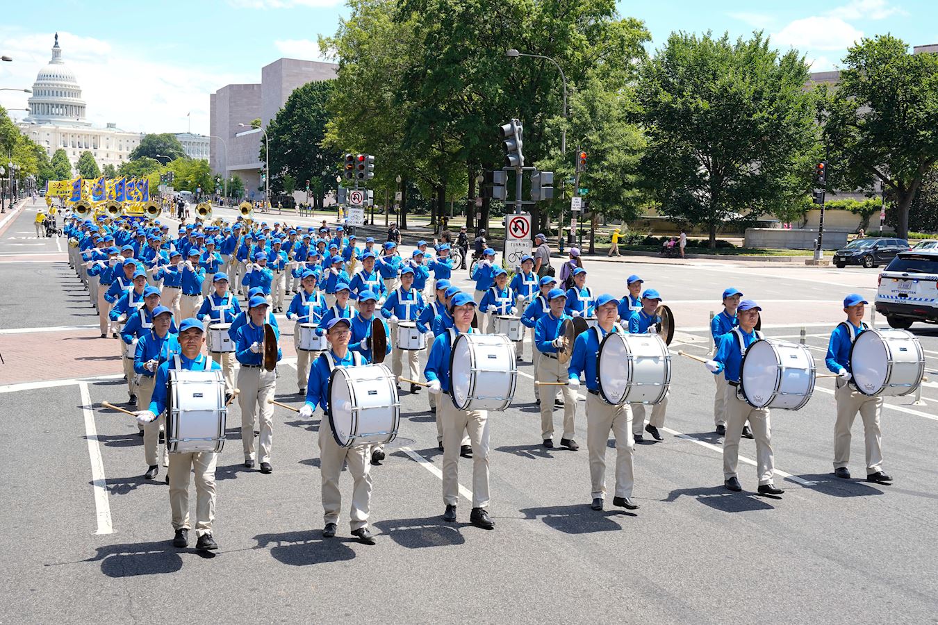 Parada je bila podijeljena u tri odvojena dijela. Prvi dio, “Falun Dafa je dobar”, vodio je Tian Guo marširajući bend, a slijedili su ga tim barjaktara i praktikanti koji su nosili transparent “Falun Dafa je dobar”. Drugi dio parade je bio poziv da se pomogne u okončanju 25 godina dugog progona. Praktikanti su držali fotografije onih praktikanata koji su umrli od posljedica progona. Treći dio je izražavao podršku kineskim ljudima koji su napustili KPK i njene pridružene organizacije. Do danas se preko 430 miliona Kineza povuklo iz KPK i s njom povezanih organizacija kako bi se distancirali od zločina koje je režim počinio protiv čovječnosti.