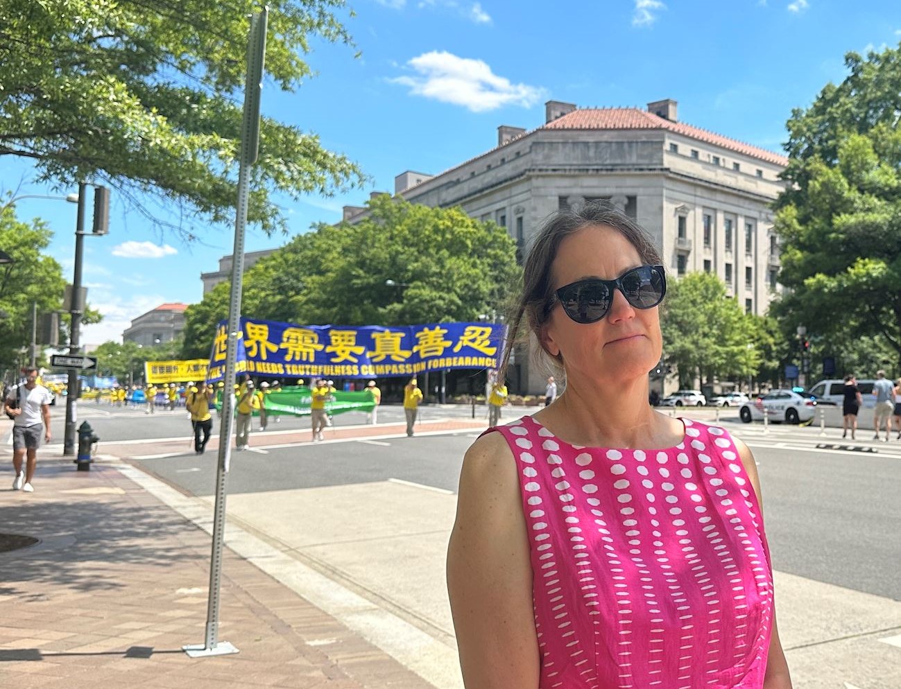 Erin, koja radi u DC-u, je kazala da je praktikantsku paradu gledala šest puta u proteklih deset godina. „Parade su bile veoma impresivne i veličanstvene“, rekla je. Znala je za progon i smatra da, bez obzira gdje se ljudi nalaze, treba da uživaju osnovna ljudska prava. “Progon Falun Gonga od strane KPK je užasan, posebno kršenje ljudskih prava i žetva organa od živih praktikanata”, rekla je.