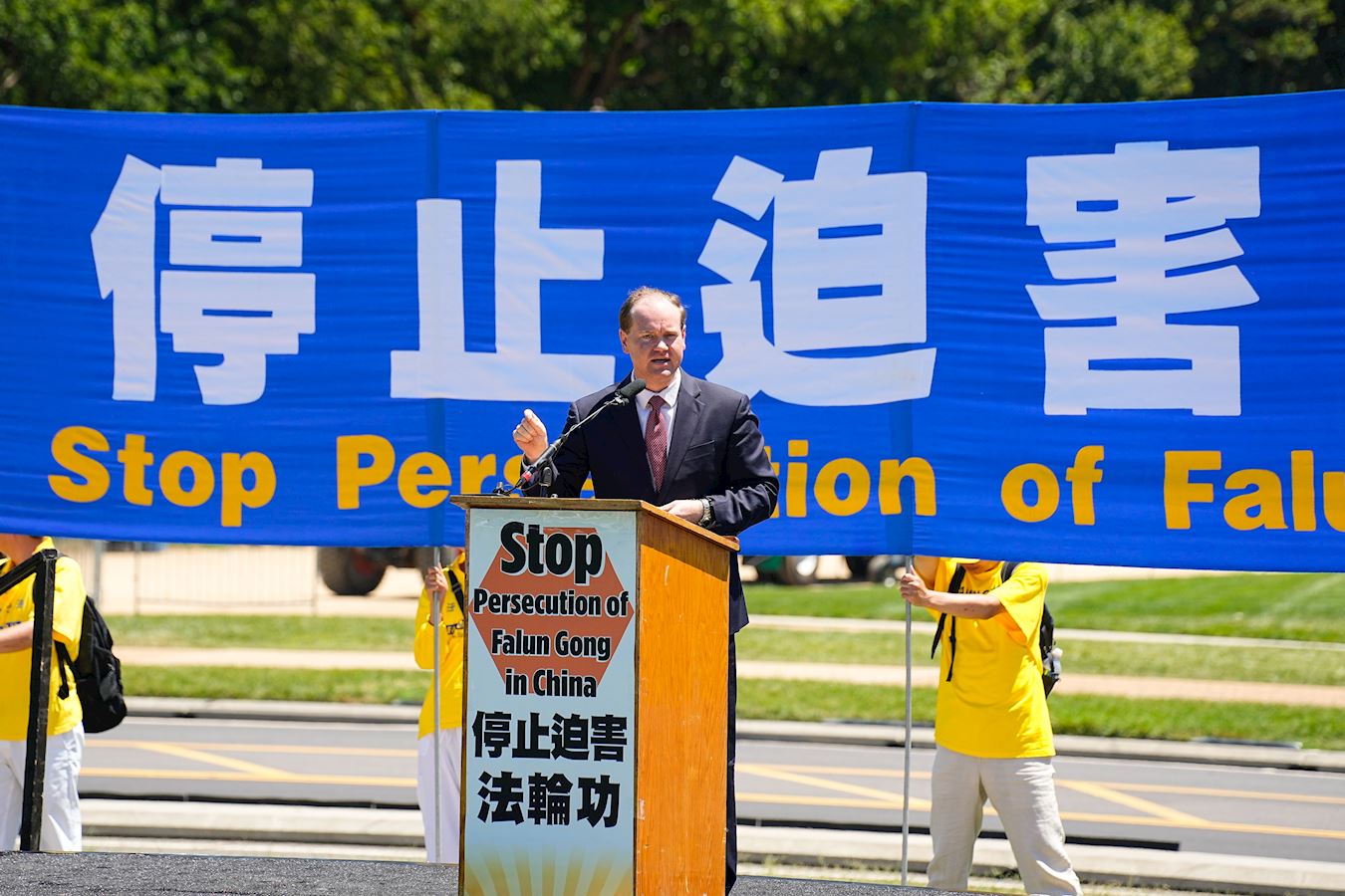 “Više od 25 godina, Falun Gong je patio na sve moguće načine. Danas smo uz vas. Stojimo uz vaše zajednice. Pozivamo na prekid ove represije, kraj mučenja, kraj zatvaranja i početak nove ere slobode za Falun Gong i za sve vjerske grupe unutar Kine.”