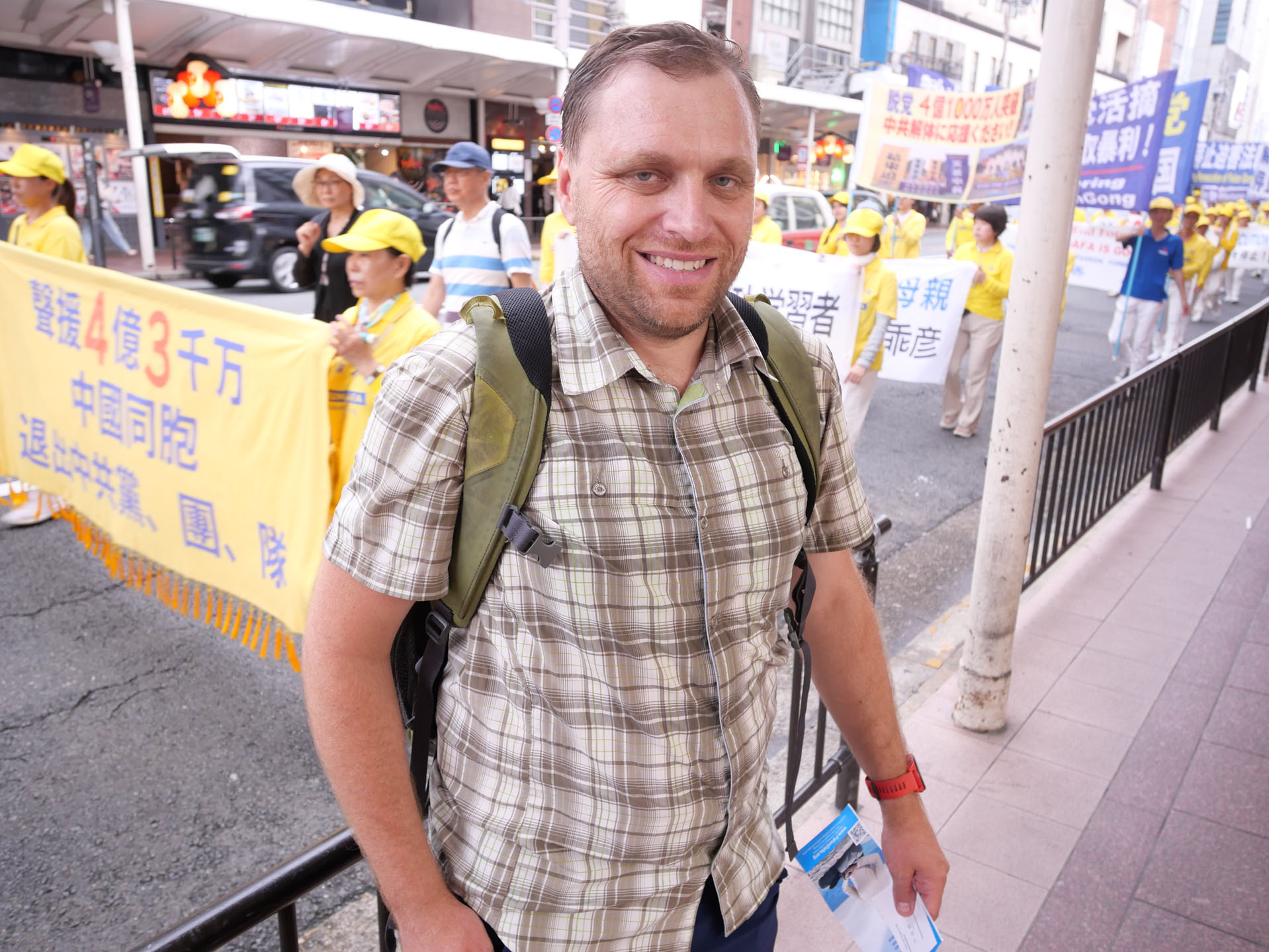 Jamašita je na TV čuo za represiju u Kini. Bilo mu je žao kad je ovo čuo i veruje da su marševi odličan način da se proširi svest. On se nada da će praktikanti održavati još ovakvih događaja i nastaviti da pričaju ljudima o progonu.