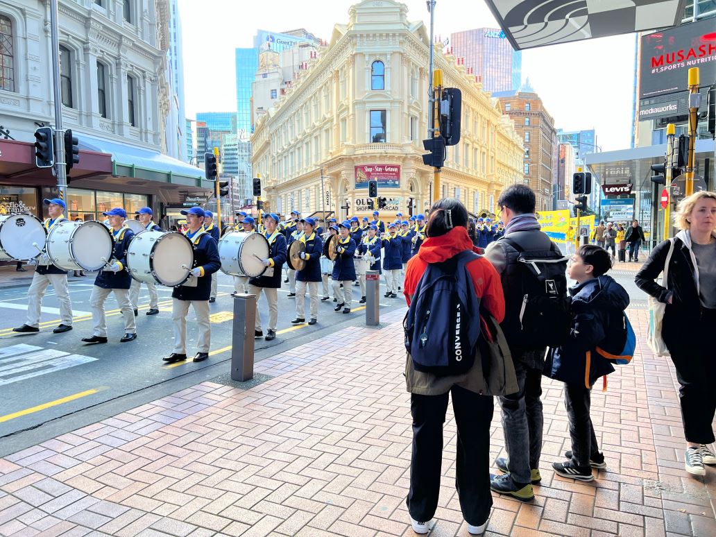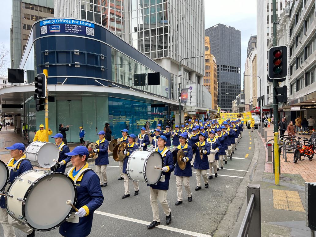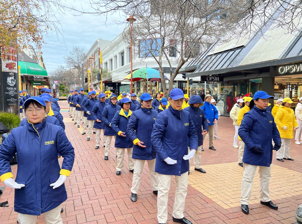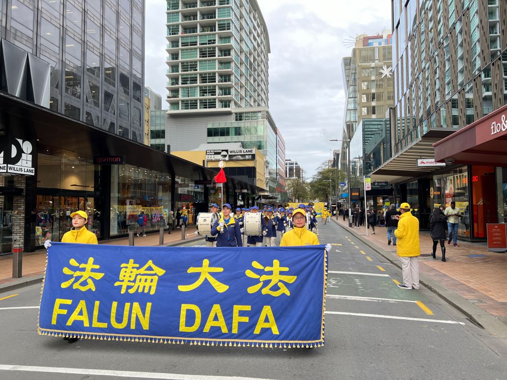Predvođeni Tian Guo Marching Bandom, praktikanti su održali veliki marš. Nakon što se na kratko zaustavio na kratkom skupu u parku Midland, marš je nastavljen duž nekoliko glavnih ulica i stigao do zgrade novozelandskog parlamenta.