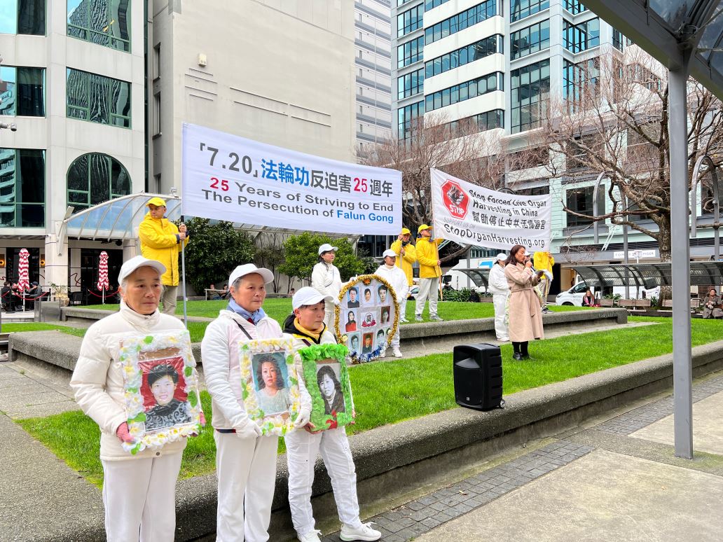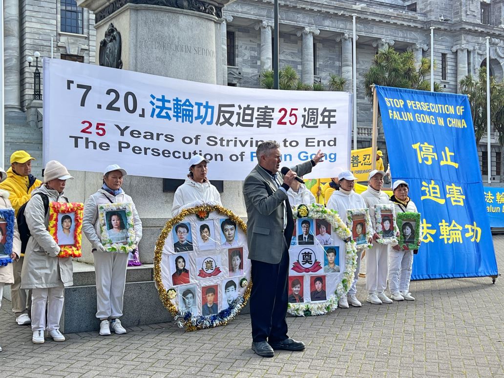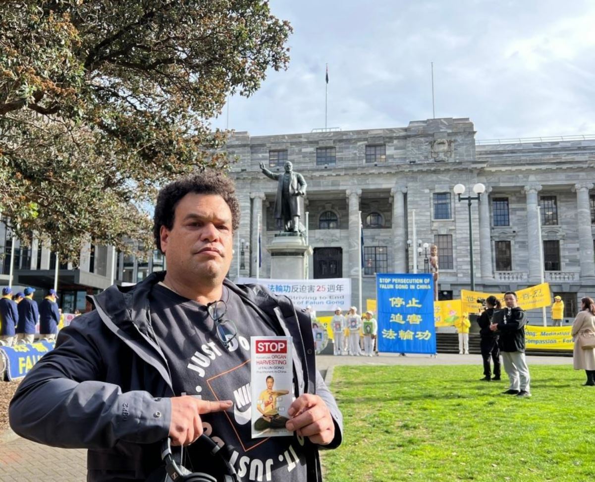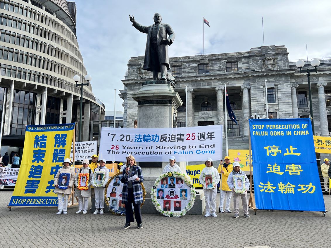 Ispred zgrade parlamenta, praktikanti su opisali kako su bili zlostavljani u Kini zbog svojih uvjerenja, od pritvora i mučenja do prisilne žetve organa. Margo MacVicar, šefica novozelandske Međunarodne koalicije za okončanje zloupotrebe transplantacija u Kini (ETAC), i drugi govornici su pozvali vladu Novog Zelanda da preduzme mjere kako bi zaustavila ove tragedije.