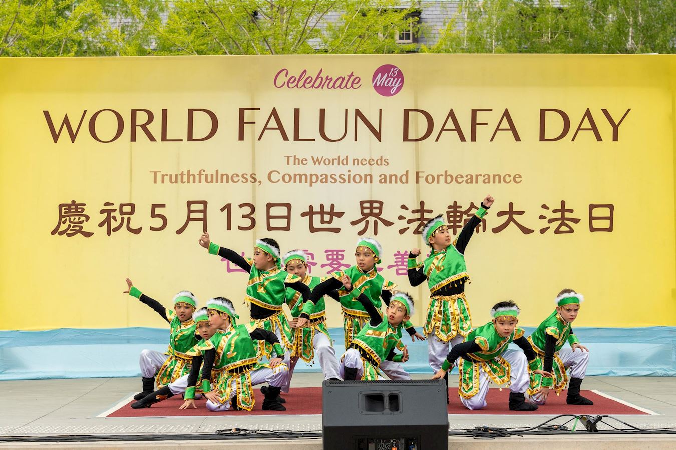 Junren je također prisustvovao ceremoniji podizanja zastave na Svjetski dan Falun Dafa. Nada se da će više ljudi naučiti o dobrobitima prakticiranja Dafa. Junren šalje čestitke Učitelju Liju: "Želim Učitelju sretan Praznik sredine jeseni! Nadam se da ću moći narasti i jednog dana plesati uz Shen Yun!”