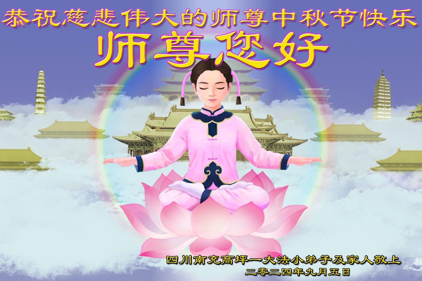 Mladi praktikant i njegova porodica iz okruga Gaoping u Nanchongu, provincija Sečuan, napisali su: „Pozdrav, poštovani Učitelju! Cela porodica je imala koristi nakon što je jedan mali praktikant počeo da praktikuje Falun Dafu. Od srca smo zahvalni Učitelju i Dafi! Naš mali učenik Dafe će se uvek sećati da je Falun Dafa dobra, da su Istinitost-Blagost-Trpeljivost dobri!”