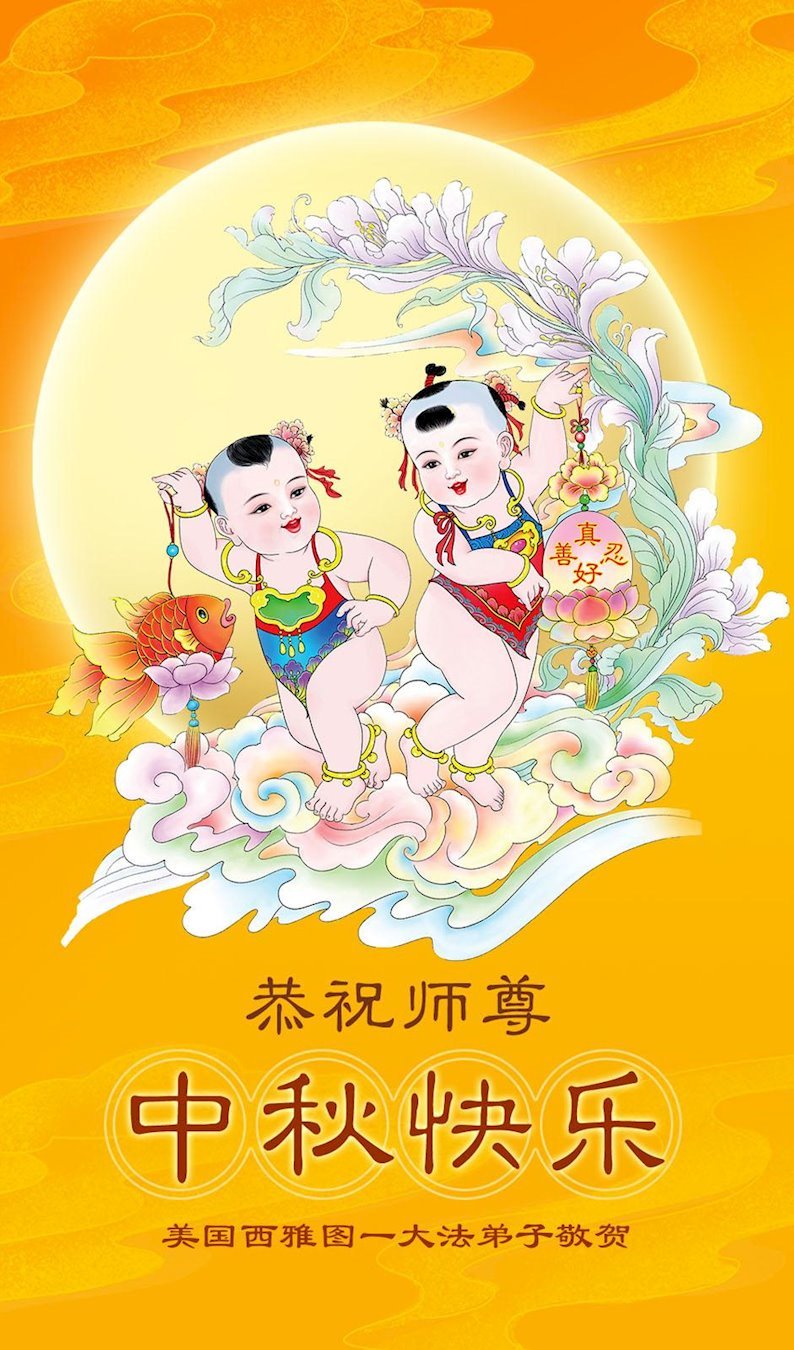 Falun Dafa praktikanti na Zapadu SAD s poštovanjem žele Učitelju Li Hongdžiju srećan Praznik sredine jeseni