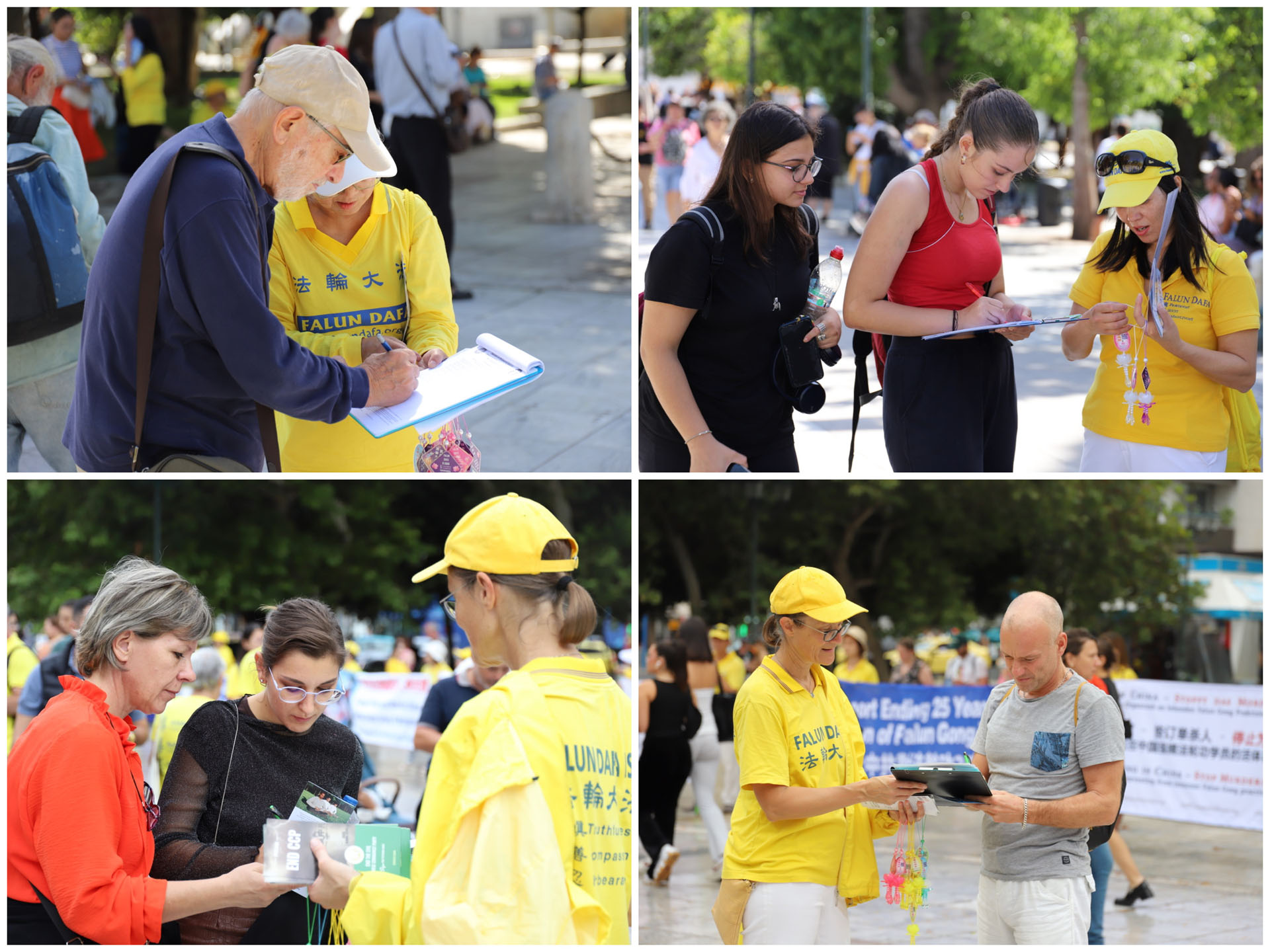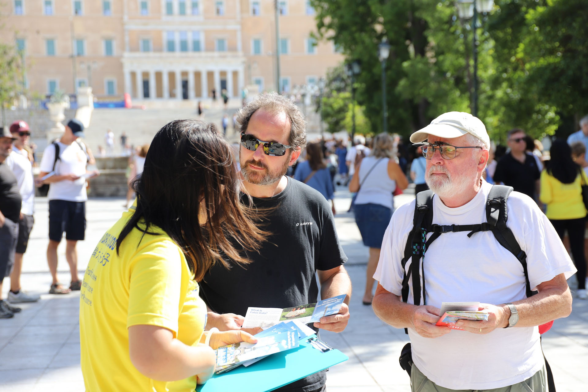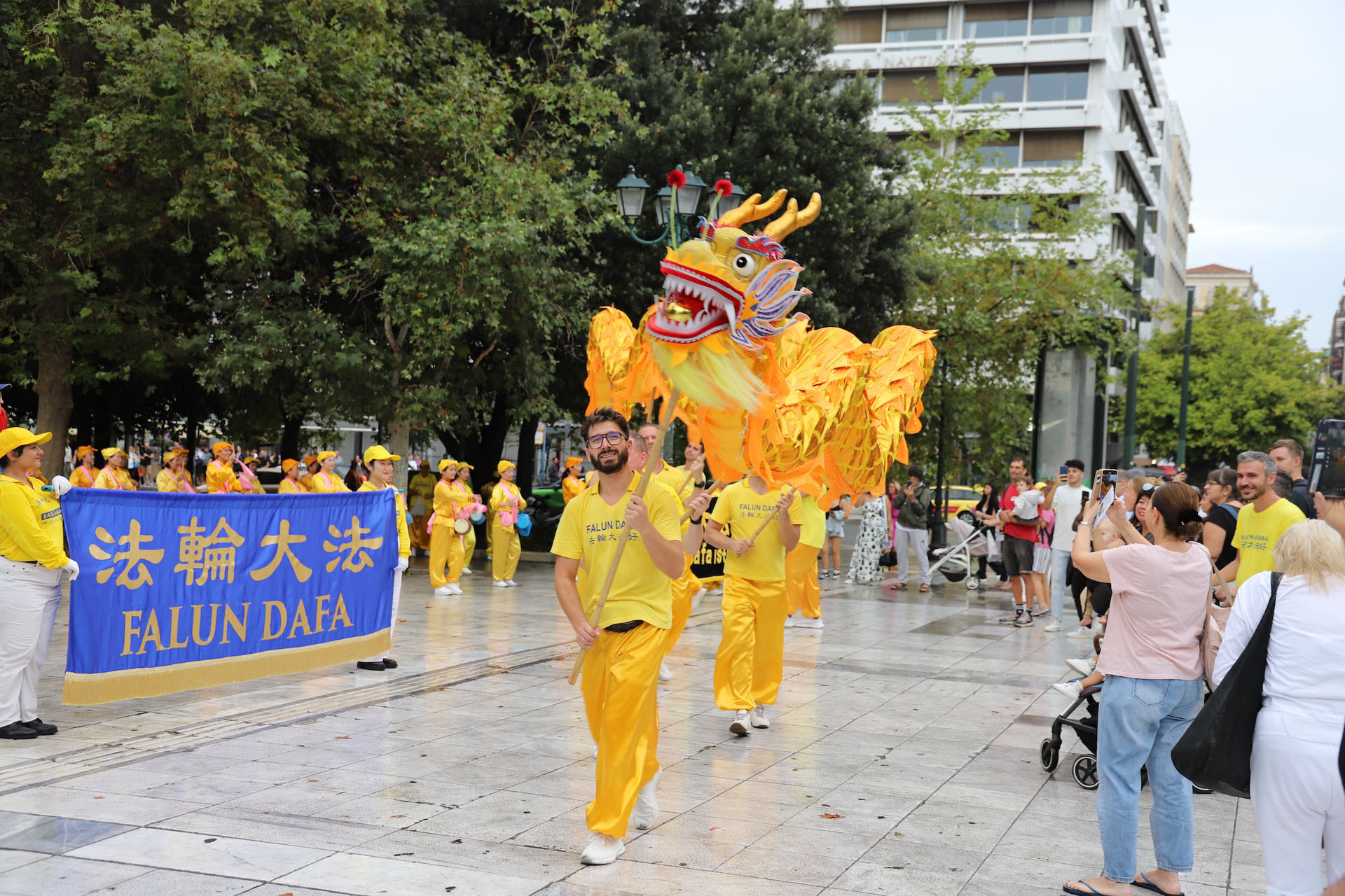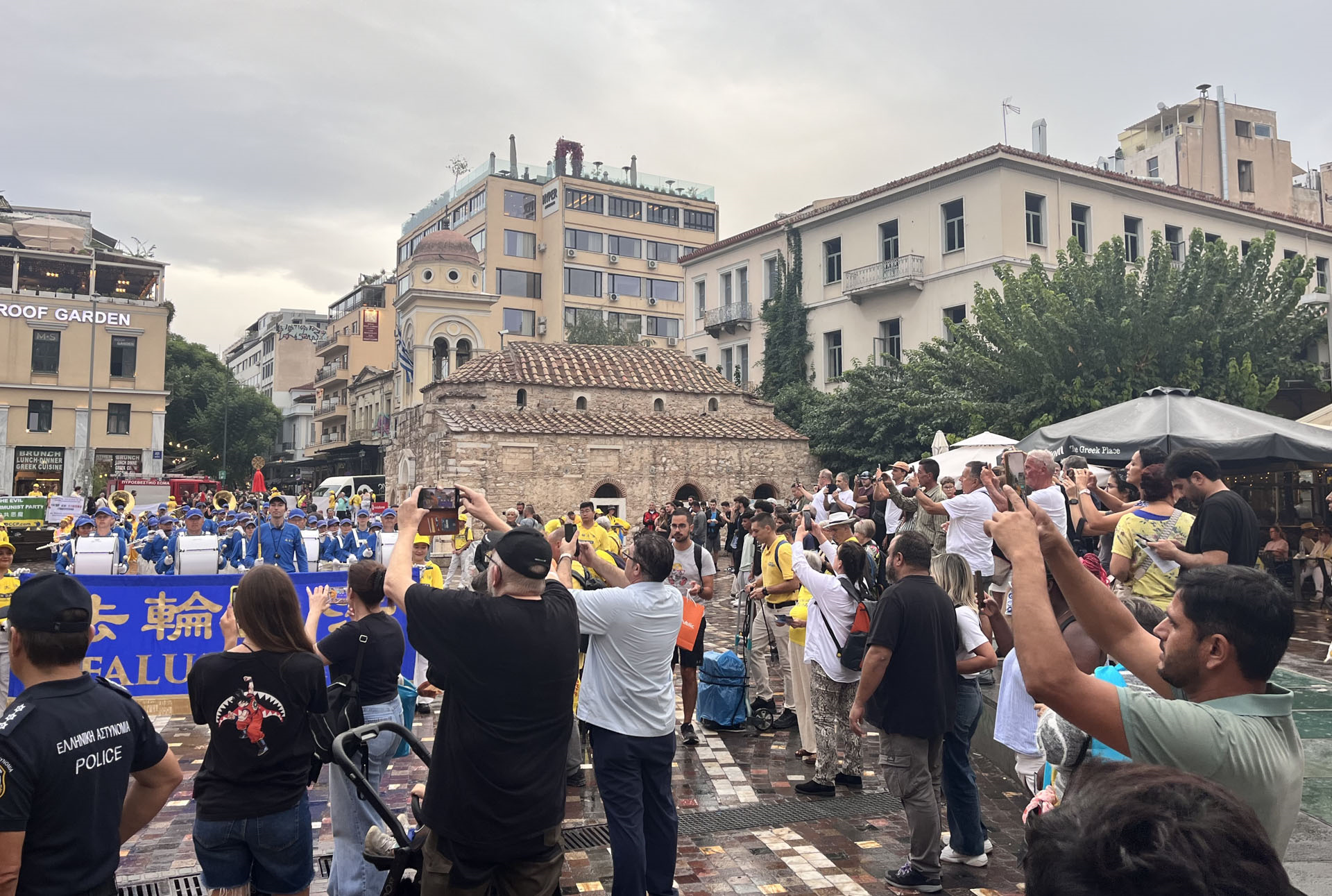 Evropski Tian Guo Marching Band i Falun Dafa praktikanti iz preko 12 zemalja su, 4. i 5. oktobra 2024. godine održali marševe i skupove u Atini, glavnom gradu Grčke. Oni su stanovnicima Grčke i turistima predstavili Falun Dafa (također poznat kao Falun Gong) i pozvali sve dijelove društva da obrate pažnju i pomognu da se zaustavi 25-godišnji progon ove prakse od strane Komunističke partije Kine (KPK).