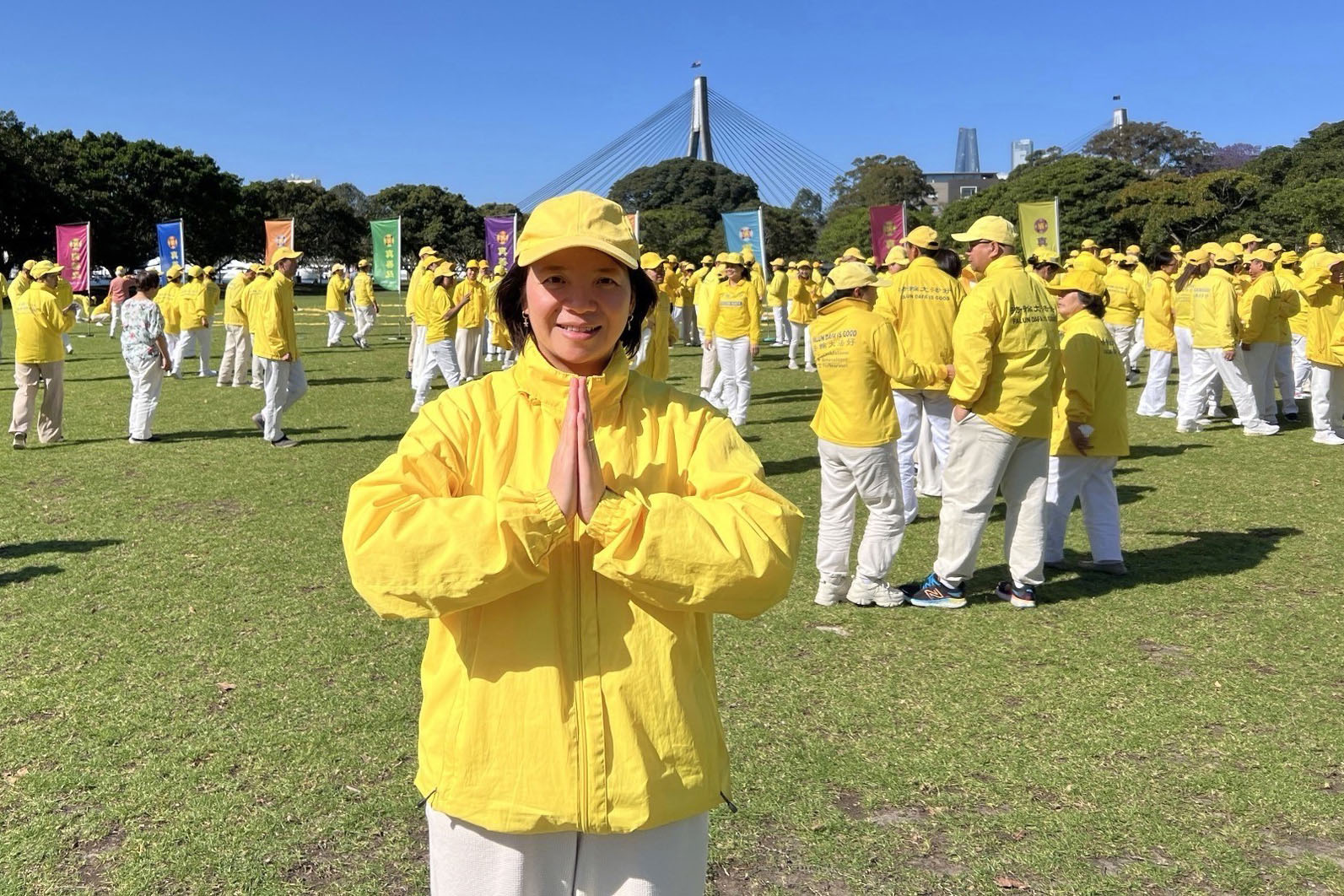 Zung Do je vijetnamska praktikantica iz Južne Australije. Ovo je bio prvi put da je prisustvovala takvoj aktivnosti i bilo joj je drago što je dio lotosovog cvijeta. “Ranije sam gledala velike znakove koje su formirali praktikanti, ali nisam se mogla pridružiti. Dok sam danas stajala zajedno s drugim praktikantima radeći vježbe, mogla sam osjetiti koliko je Falun Dafa predivan i bila sam u suzama”, rekla je. “Sretna sam što sam Falun Dafa praktikantica koji slijedi principe Istinitost-Dobrodušnost-Toleranciju. Blagoslovljena sam dobrim zdravljem i pozitivnim načinom razmišljanja i uvijek nastojim biti bolja osoba.”
