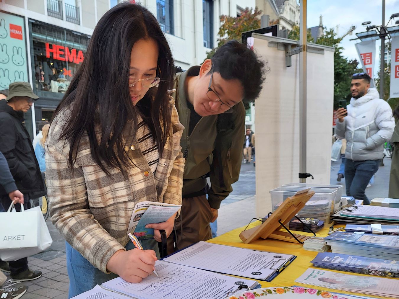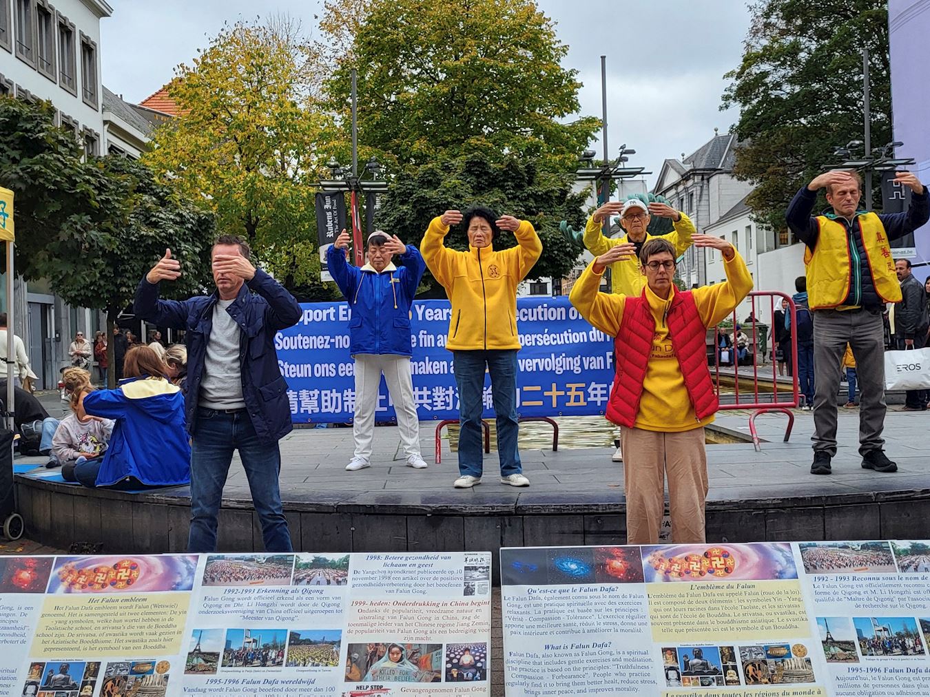 19. oktobra 2024, Falun Gong praktikanti su predstavili Falun Dafu u poslovnom okrugu Antverpena gde su demonstrirali vežbe i razgovarali sa ljudima o 25-godišnjem progonu ove prakse od strane Komunističke partije Kine (KPK). Neki su naučili vežbe, a mnogi su potpisali peticiju kojom se poziva na prekid progona.