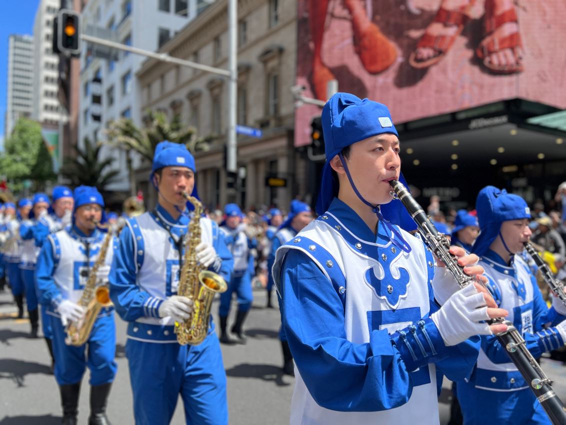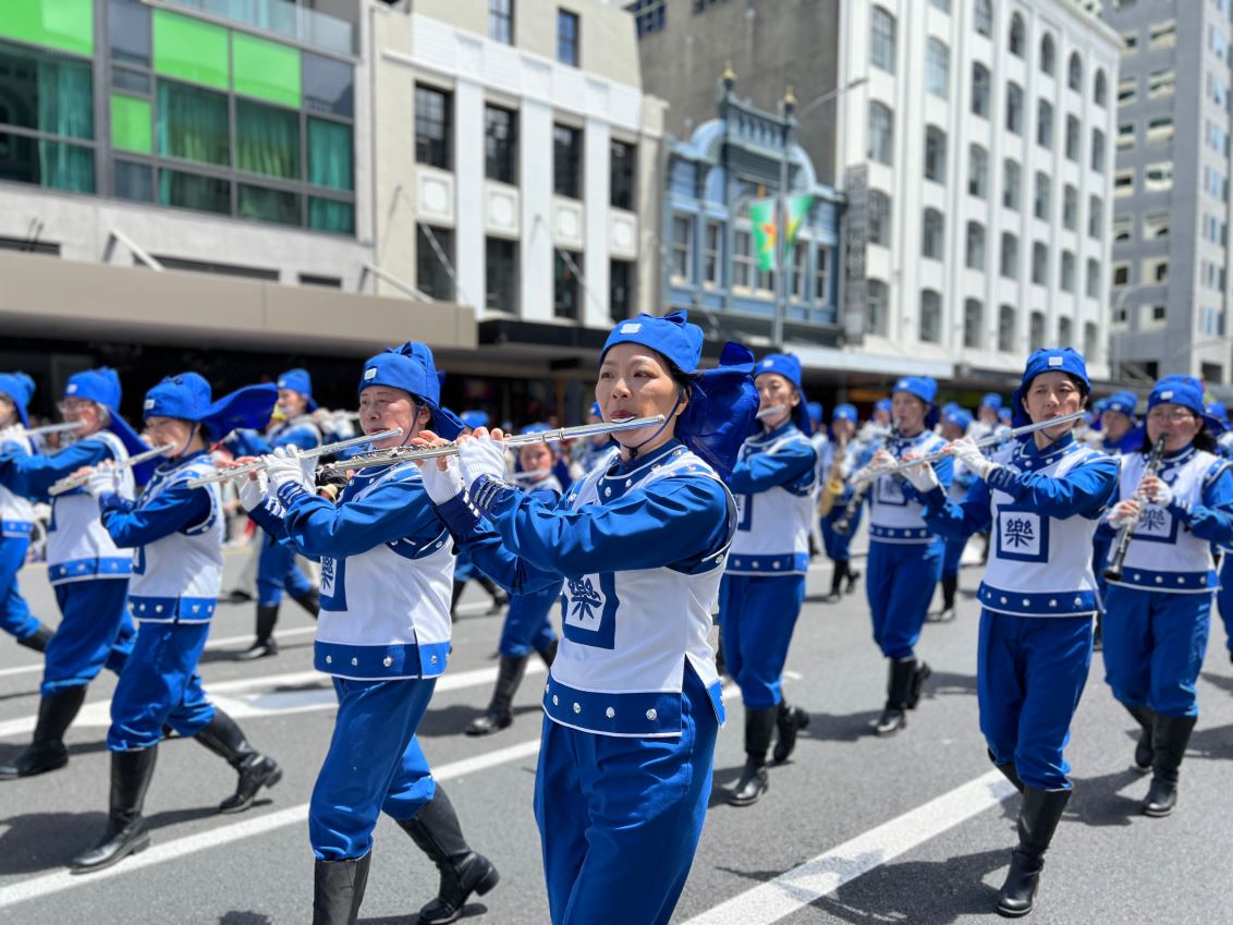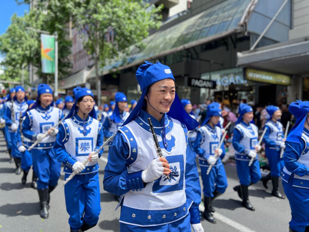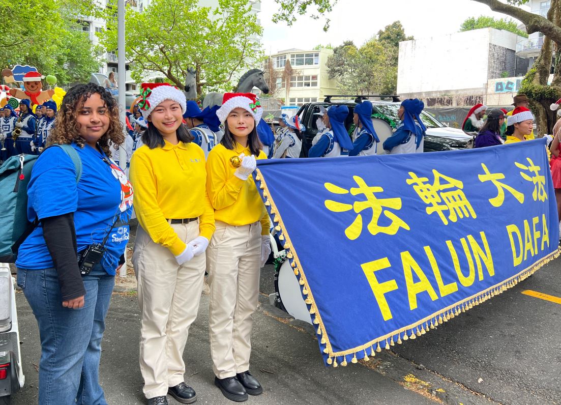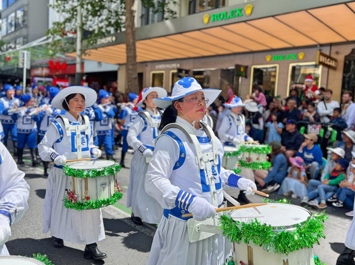 Na Novom Zelandu, Tian Guo Marching Band Falun Dafa praktikanata, plesači zmajeva i tim bubnjara sudjelovali su u četiri božićne parade 23. i 24. studenog 2024. Njihovi su nastupi bili dobro primljeni od strane gledatelja i dobili su pljesak puno puta.