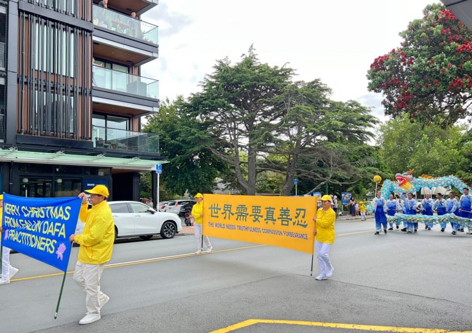 Od 4. do 9. prosinca 2024. Falun Dafa praktikanti su sudjelovali u sedam božićnih parada održanih u Papatoetoe, Mangere Bridge, Kumeu, Browns Bay, okrugu Howick, gradu Matamata i Hamiltonu.
