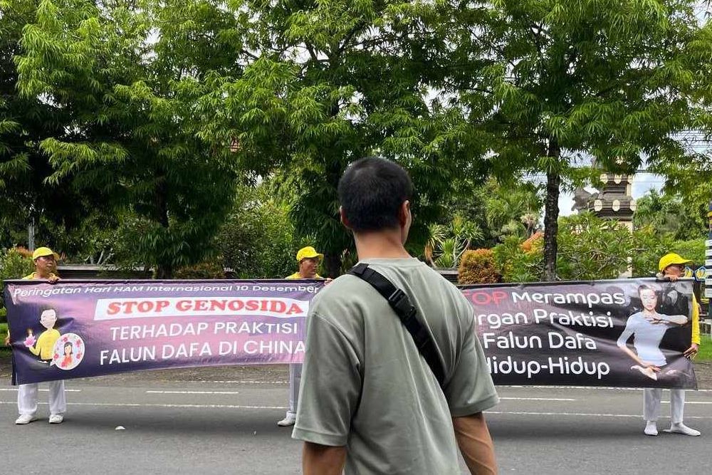 Ovo je bio prvi put da je Agus iz Denpasara čuo za Falun Gong. Pažljivo je slušao dok je praktikant objašnjavao šta je Falun Gong i rekao da je veoma zainteresovan za praksu. Praktikant je zatim objasnio da je današnja aktivnost povezana sa ozbiljnim kršenjem ljudskih prava koje KPK čini protiv Falun Gong praktikanata koji su nezakonito pritvoreni i mučeni zbog svog verovanja.