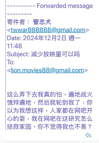 Prema internetskim podacima, adresa pripada osobi koja govori kineski i koja se zove "guan zhong quan". Isti račun također je korišten za prijetnje kinima koja su prikazivala dokumentarac "Državni organi", koji razotkriva državni ilegalni sustav žetve organa u Kini. Sumnja se da je osoba internetski komentator kojeg plaća Kineska komunistička partija (KPK), pro-KPK aktivist ili kineski agent.