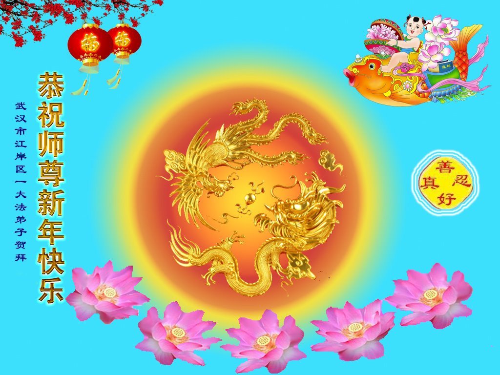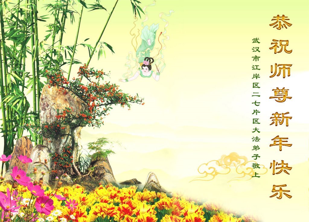 Falun Dafa praktikanti iz provincije Hubei s poštovanjem žele Učitelju Li Hongdžiju srećnu Novu godinu (18 čestitki)