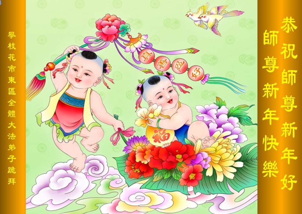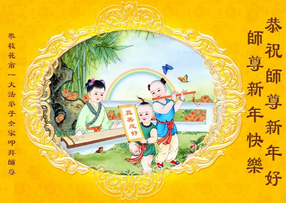 Falun Dafa praktikanti iz provincije Sečuan s poštovanjem žele Učitelju Li Hondžiju srećnu Novu godinu (19 čestitki)
